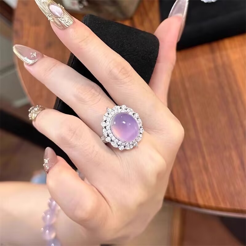 Оптовое серебряное кольцо с инкрустацией из роскошного зеленого халцедона для женщин
