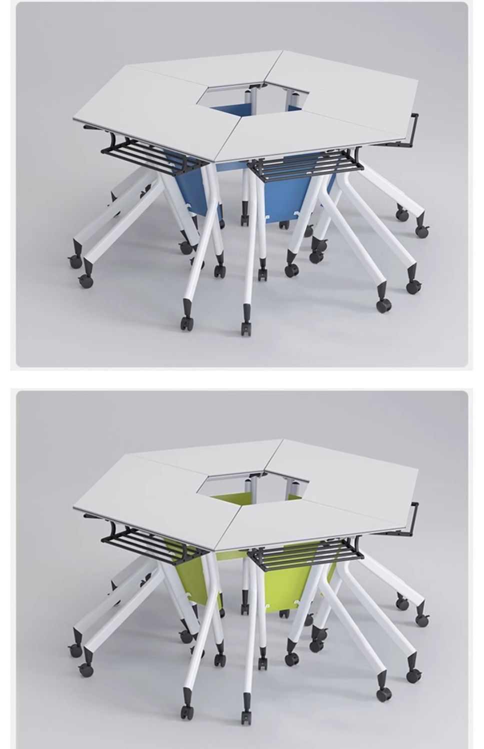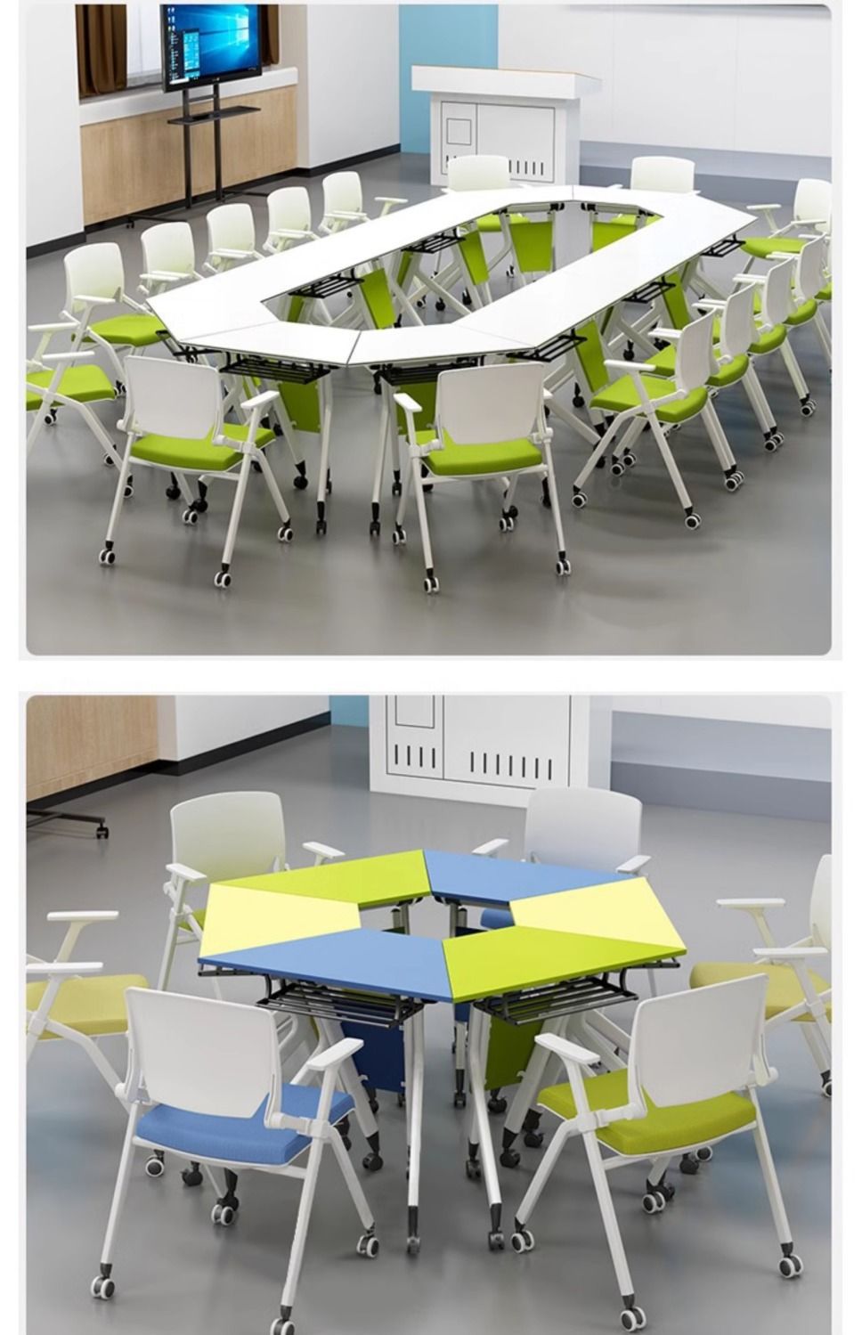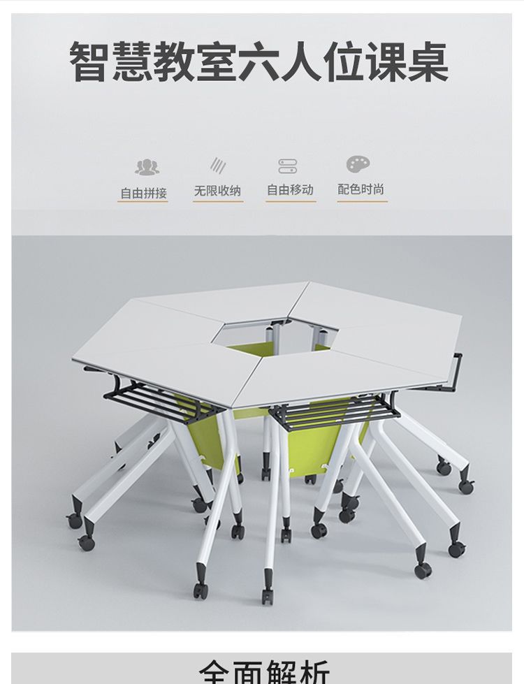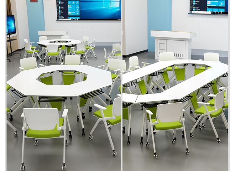 Складной учебный стол и стулья в комплекте, мобильный трапециевидный стол, сплошной конференц-стол для образовательных учреждений, шестиугольный стол