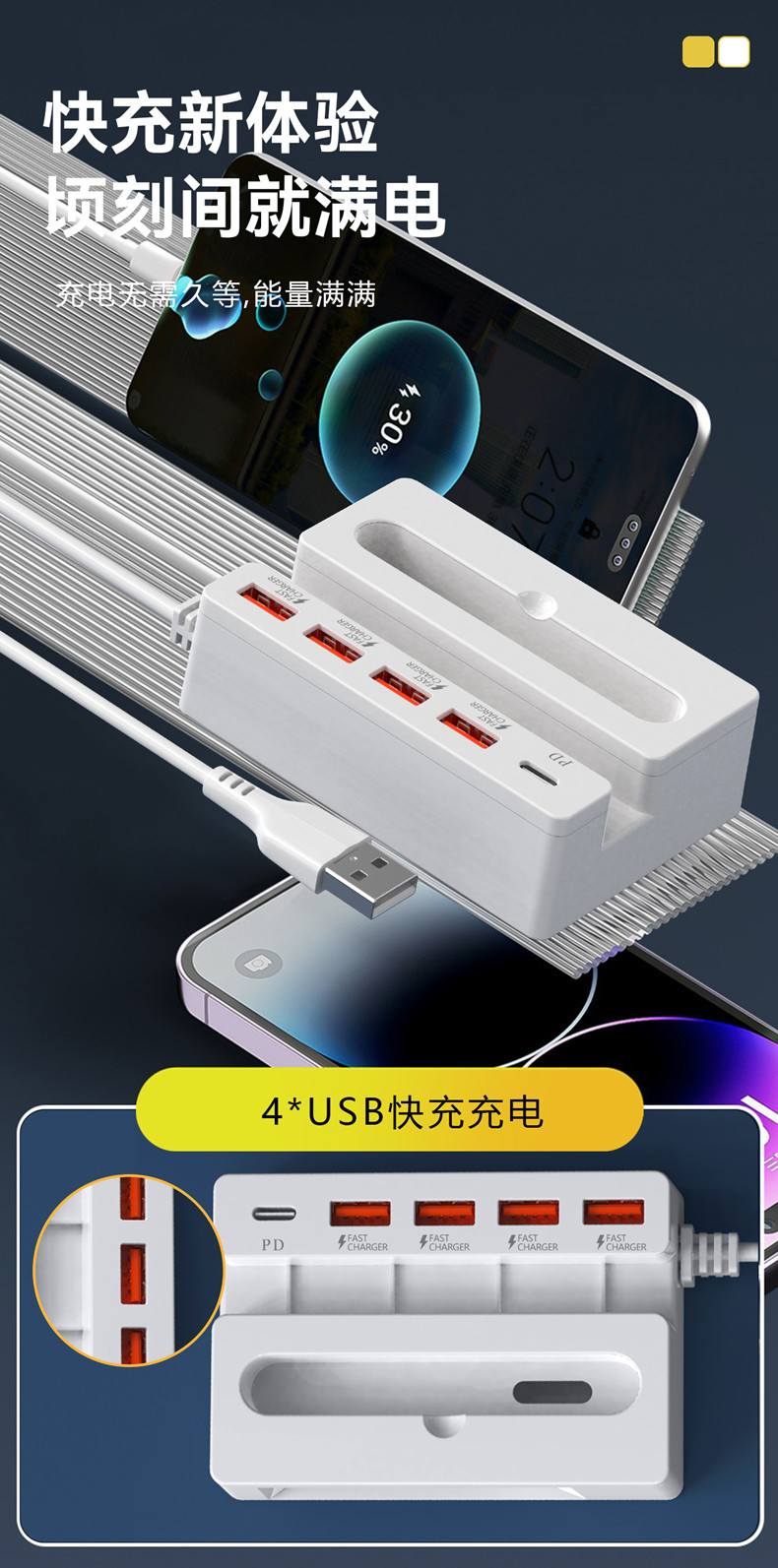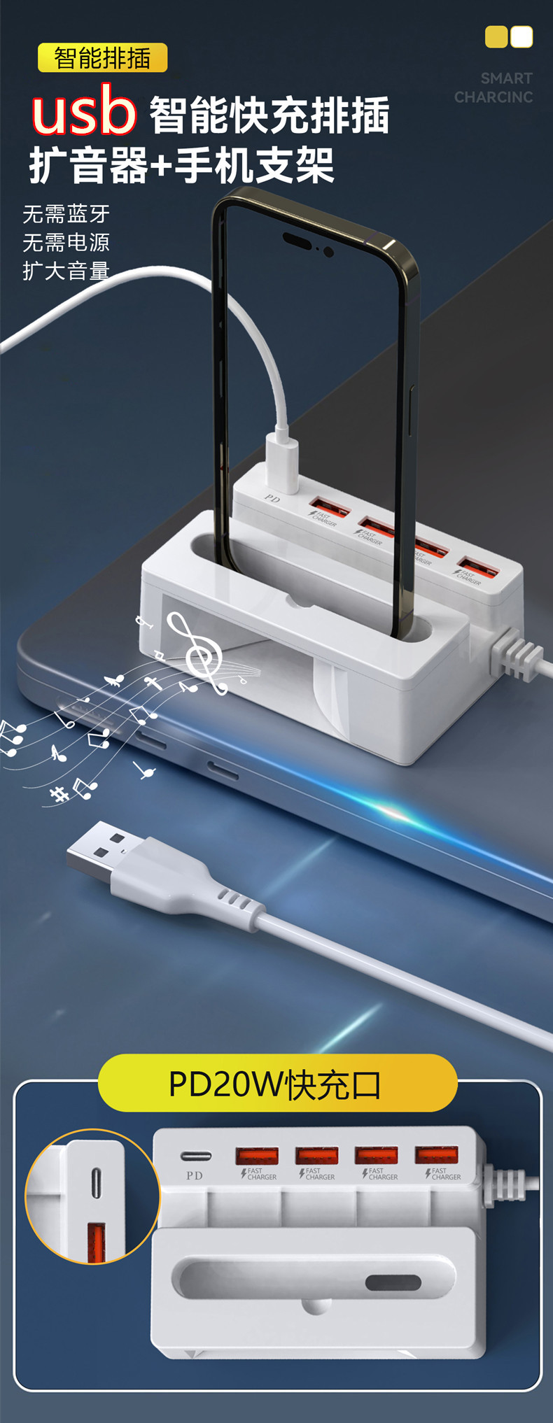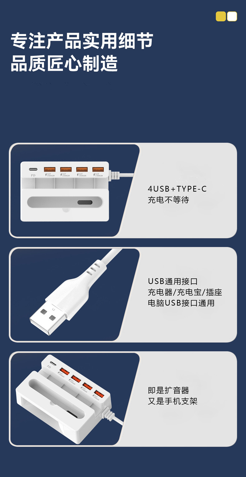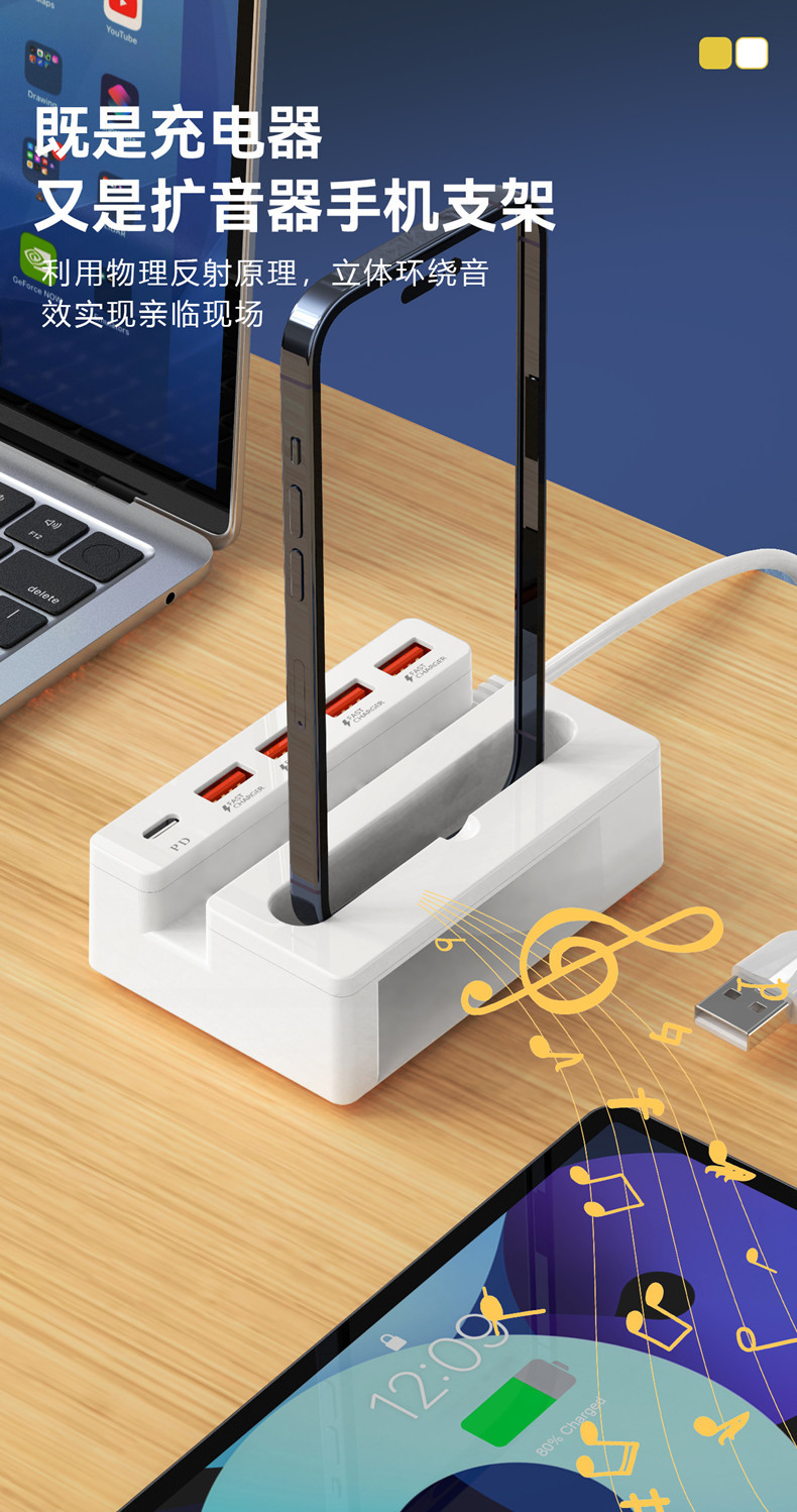 Новый многофункциональный зарядный HUB с функцией звукового усиления мобильный зарядное устройство USB быстрая зарядка PD кабель подарок