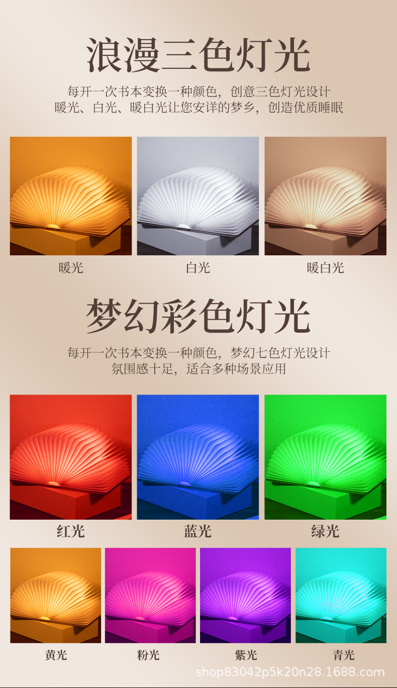 Деревянная трехцветная складная книга-лампа, светодиодный атмосферный свет, подарок на китайский День святого Валентина, ночник для празднования