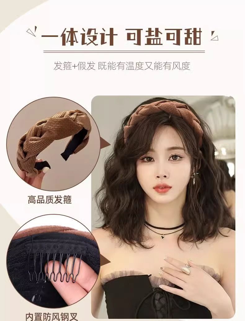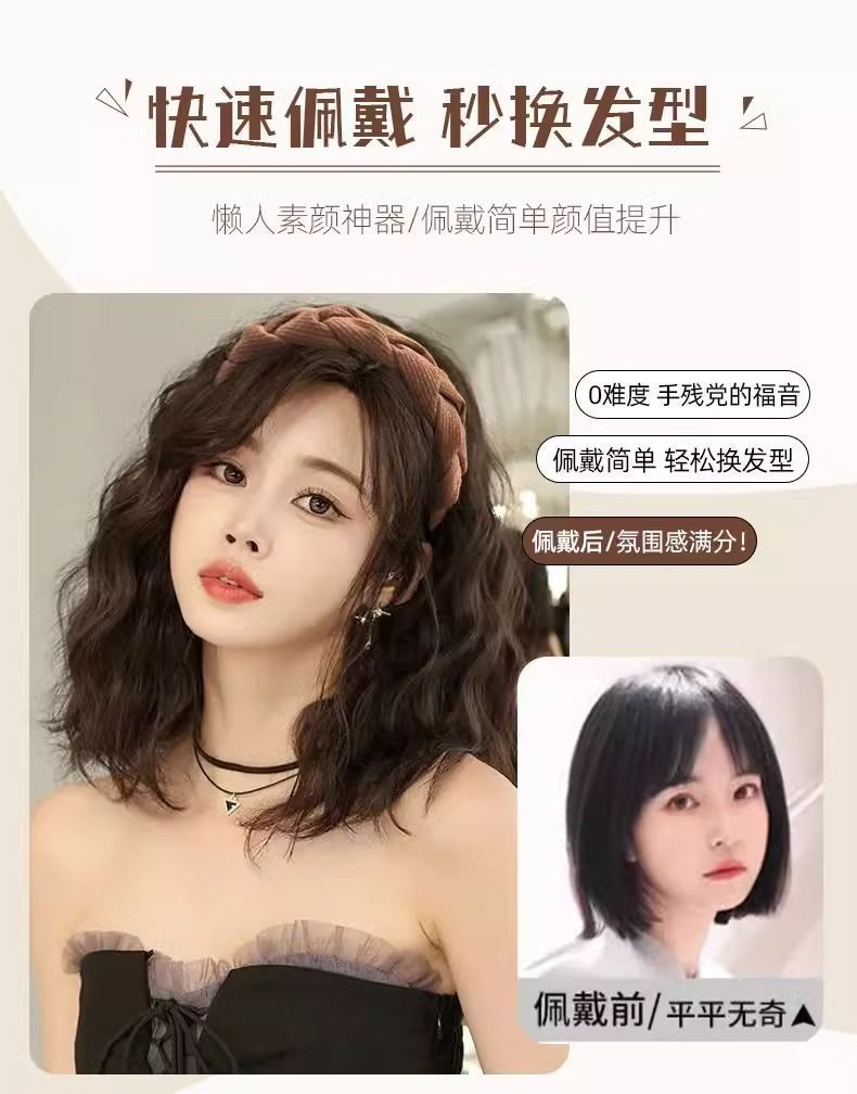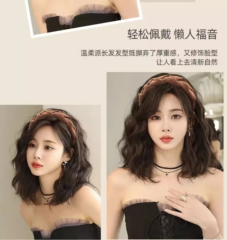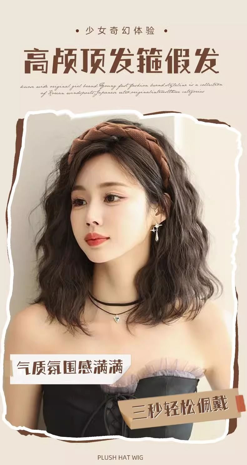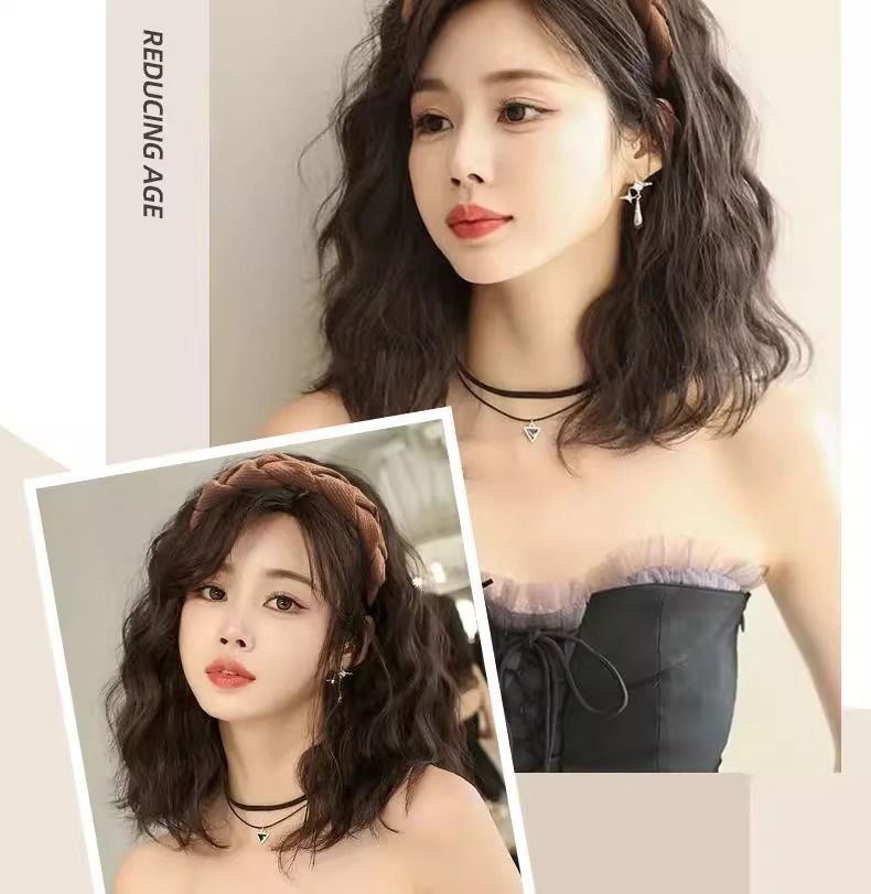 Парик с повязкой на голову, имитация волос, шершавая прическа, одноразовый, натуральный, пушистый, короткие кудри, водяные волны, полукрытие