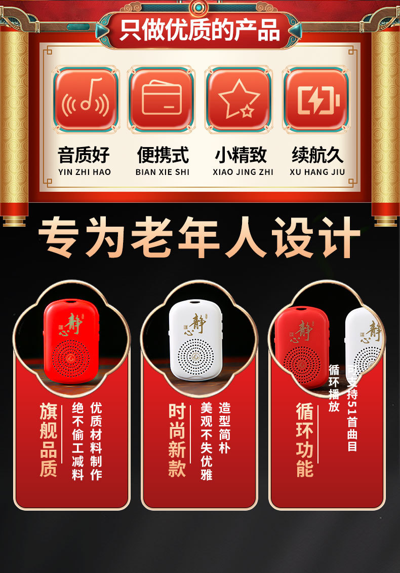Маленький проигрыватель, 51 классический трек, перезаряжаемый проигрыватель для пожилых, однотрассовый кулонный проигрыватель
