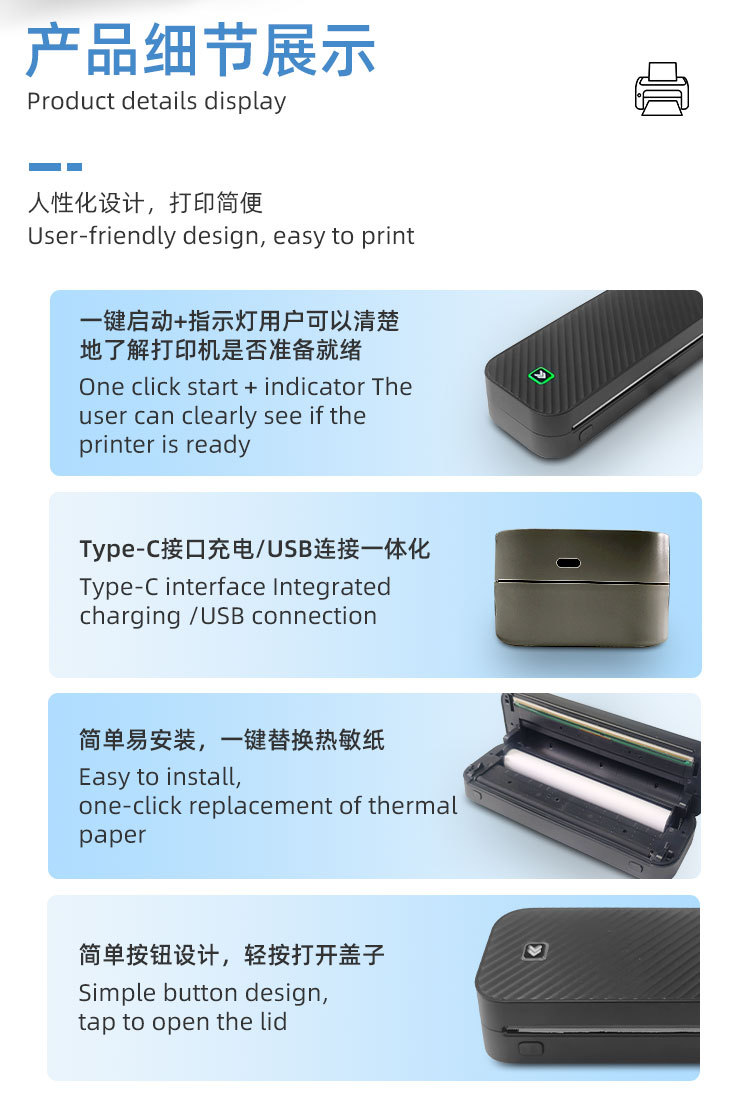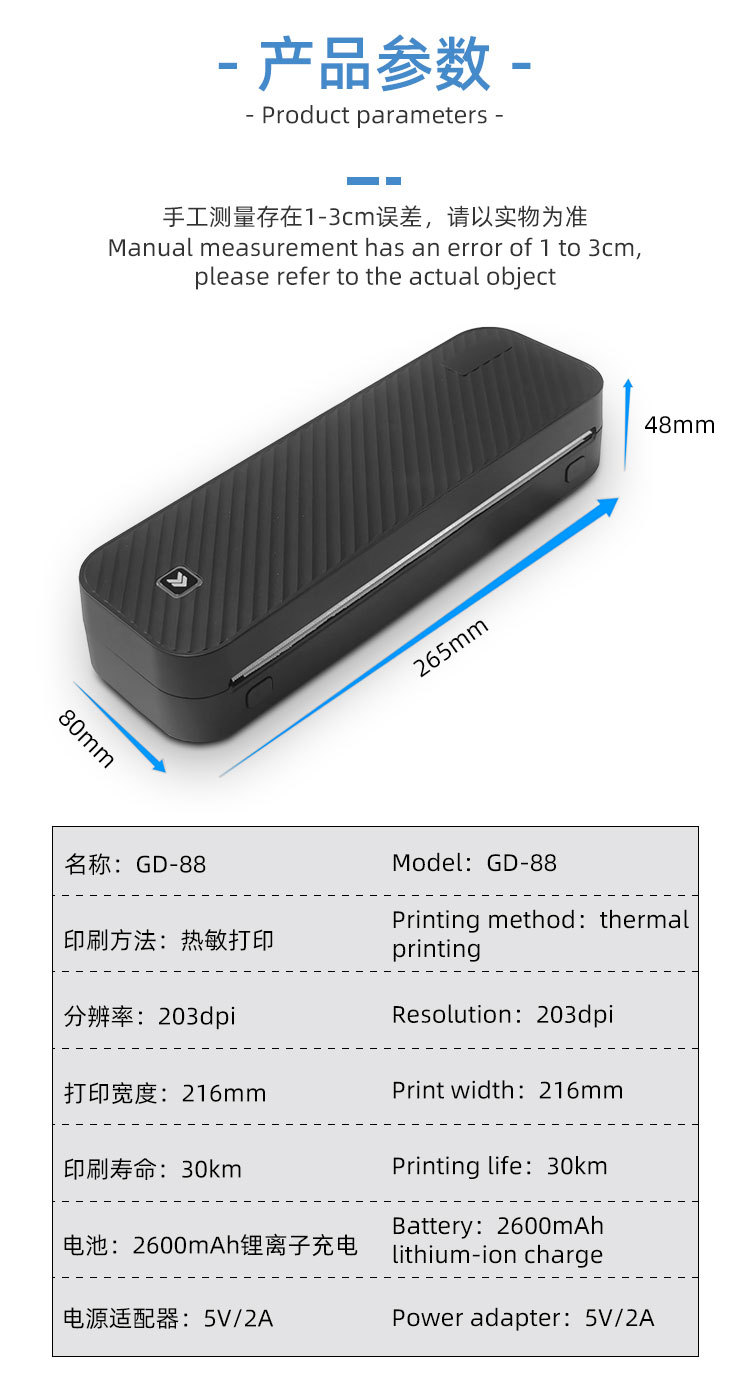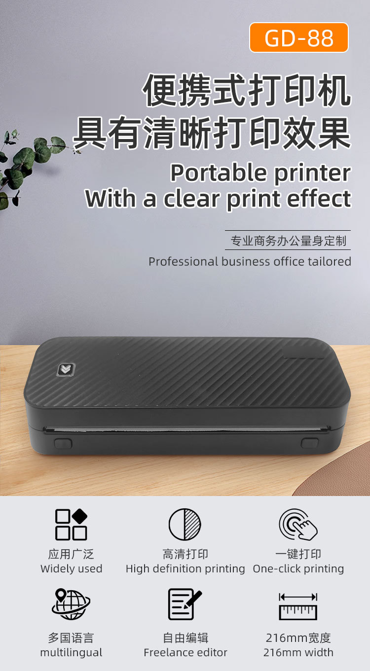 Портативный беспроводной термопринтер для фотографий A4, Bluetooth, для дома