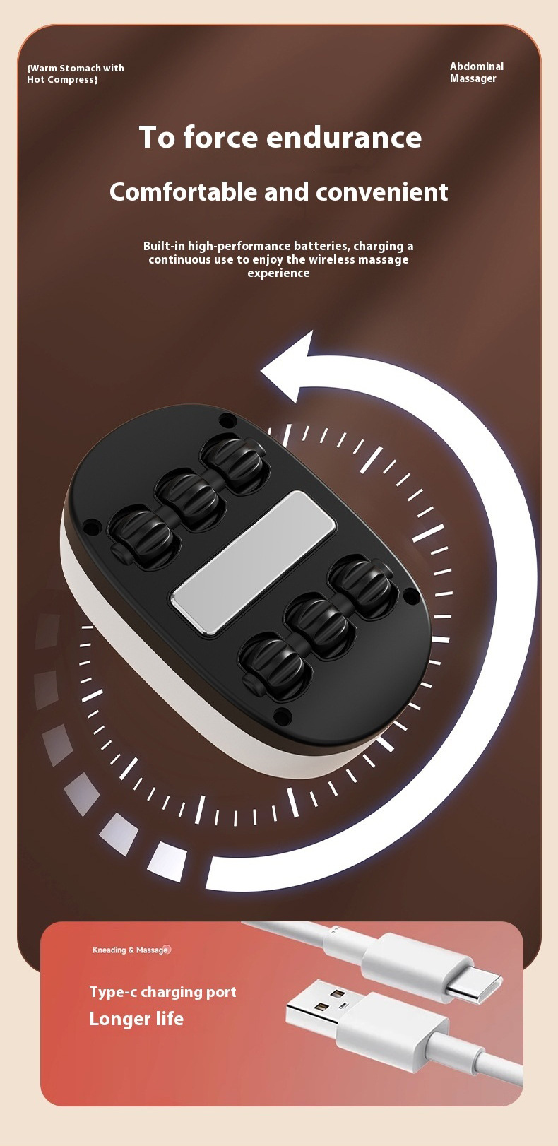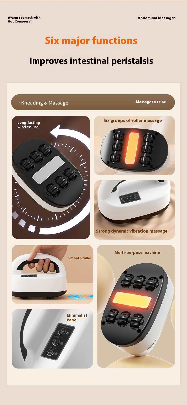 Электрический роликовый массажер, зарядное устройство для роликовой щетки, массажер для тела с горячим компрессом, инструмент для массажа живота