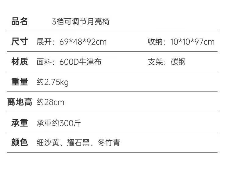 Складной стул с регулируемой высотой стул-луна для кемпинга