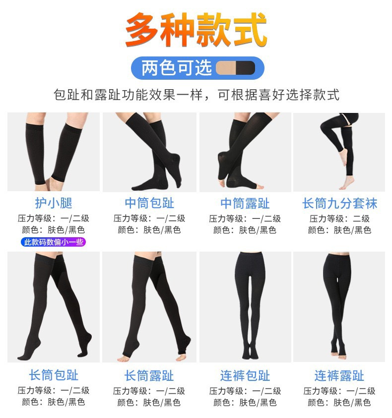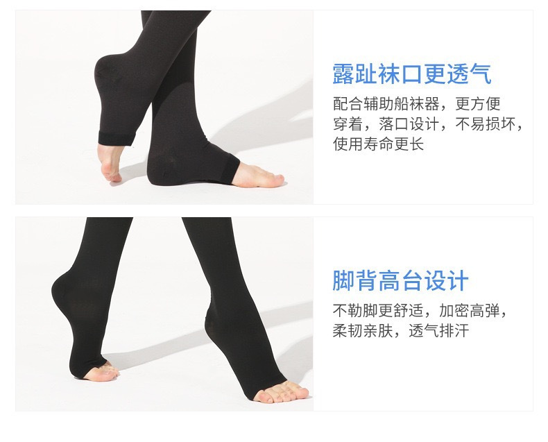 Эластичные носки для варикозных вен Xinzhangzhang, уровень II, длинные, открытый носок, с защитой для икры