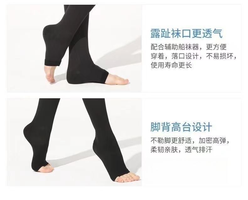 Черные средние носки Xinzhangzhuang для варикозных вен, уровень II, с открытыми щиколотками