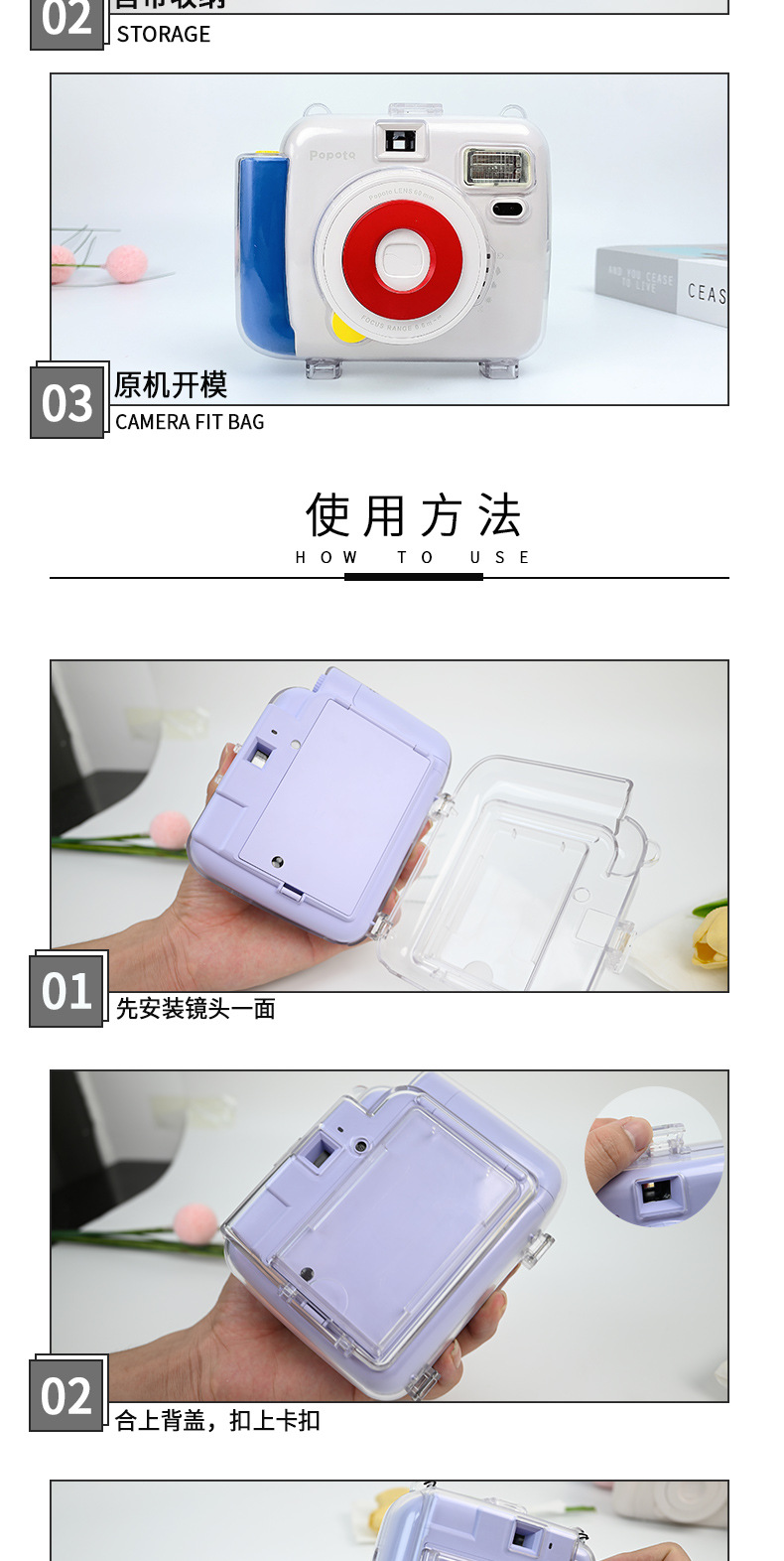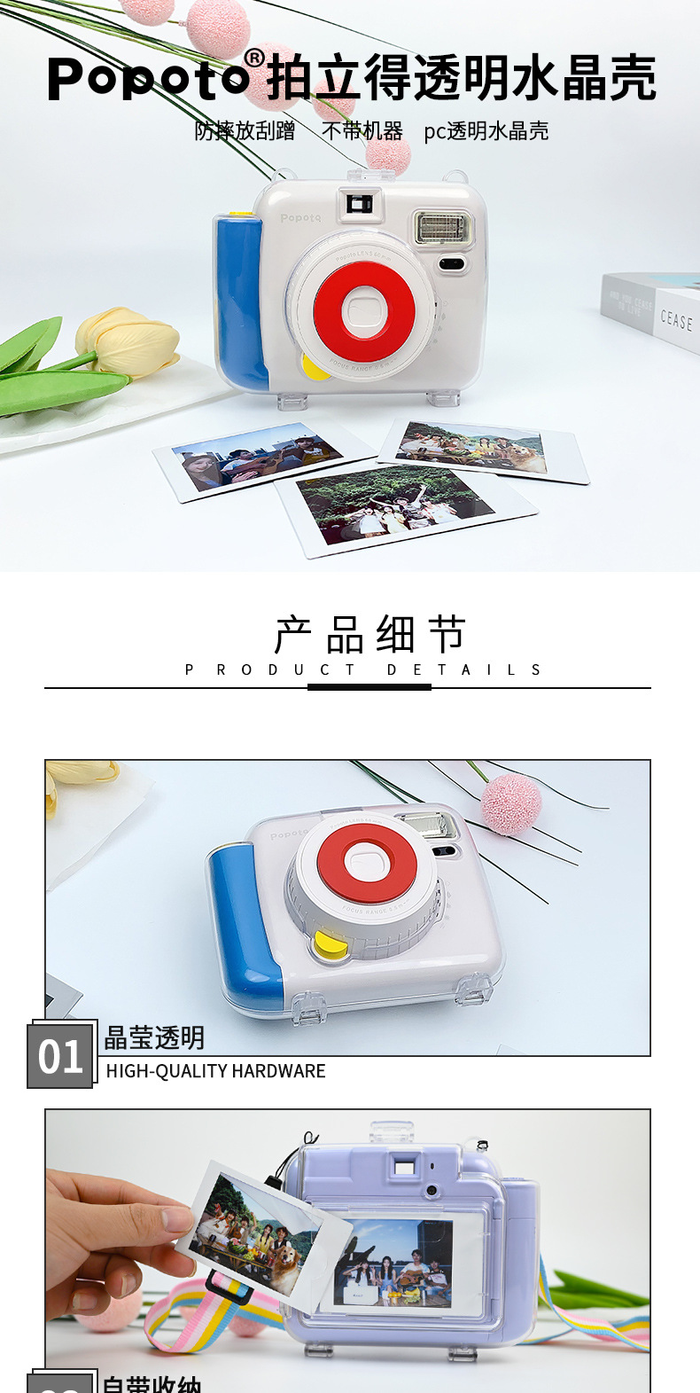 Моментальная камера Popoto с прозрачным/красным защитным чехлом в наличии