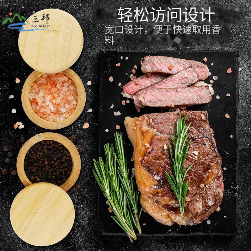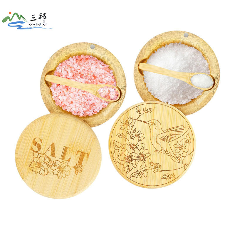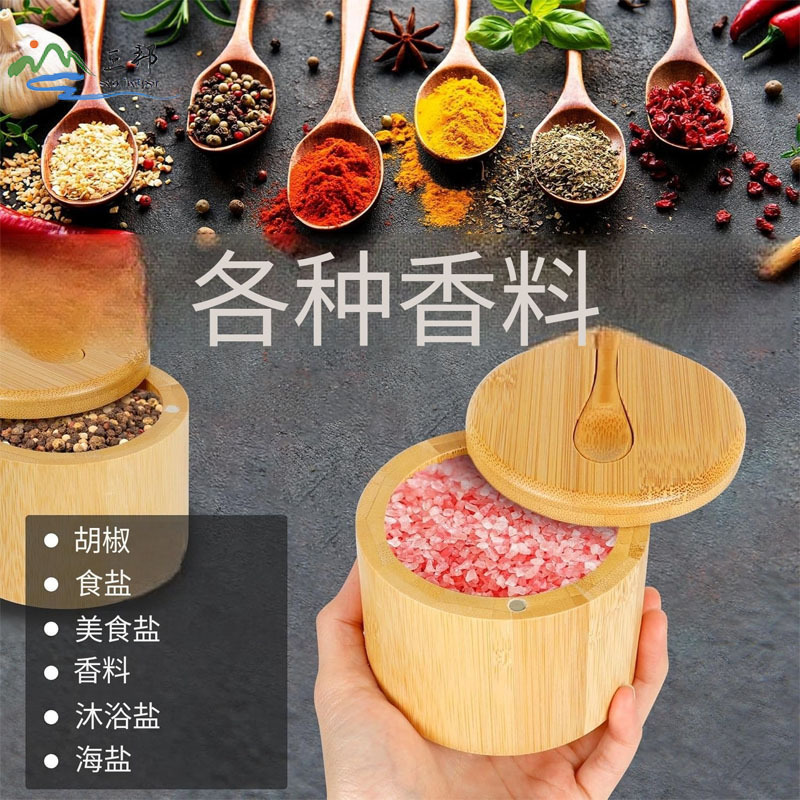 Бамбуковая коробка для хранения приправ, банка для приправ с крышкой, ложка, вращающаяся банка для соли, банка для специй, бамбуковая чаша для соли, контейнер для приправ