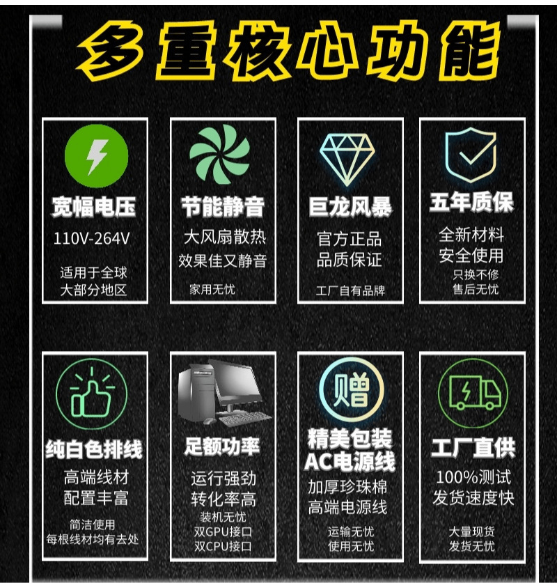 Ремонтированный блок питания для настольного компьютера 250W, корпус блока питания, ATX
