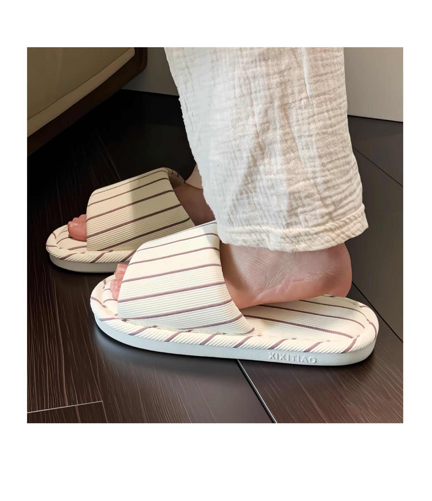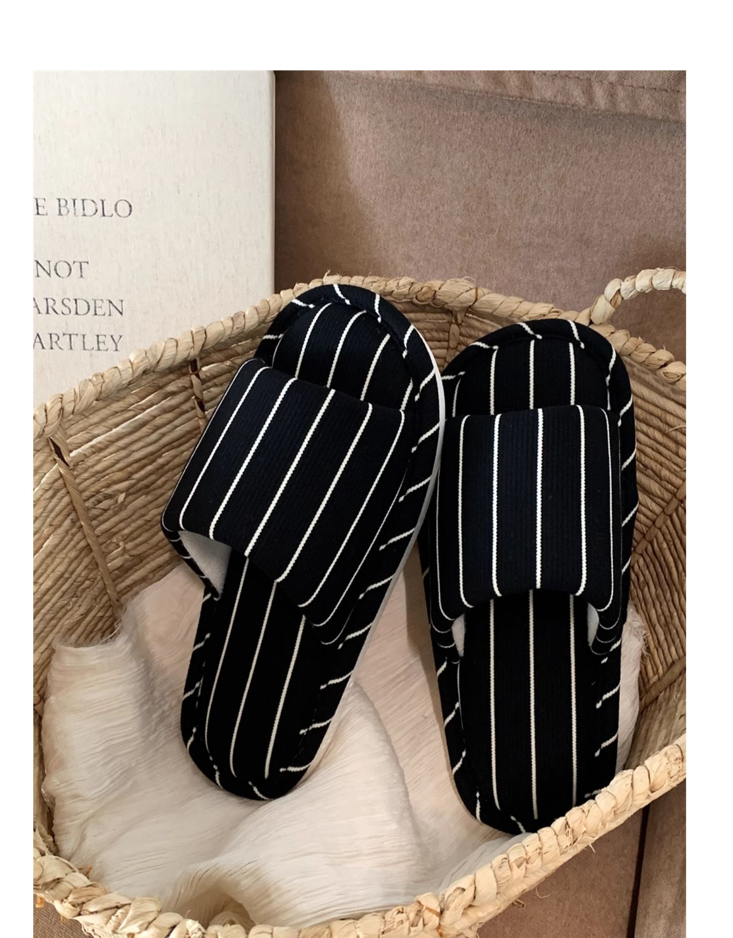 Тонкие полоски простых домашний тапочек японского стиля из хлопка и льна, мягкая подошва, круглогодичные универсальные тапочки для кондиционированных помещений для женщин