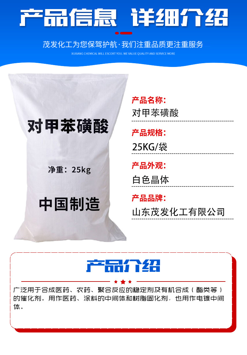 П-толуолсульфоновая кислота Стабилизатор краски Белый порошок Промышленный класс Синтетический материал П-толуолсульфоновая кислота