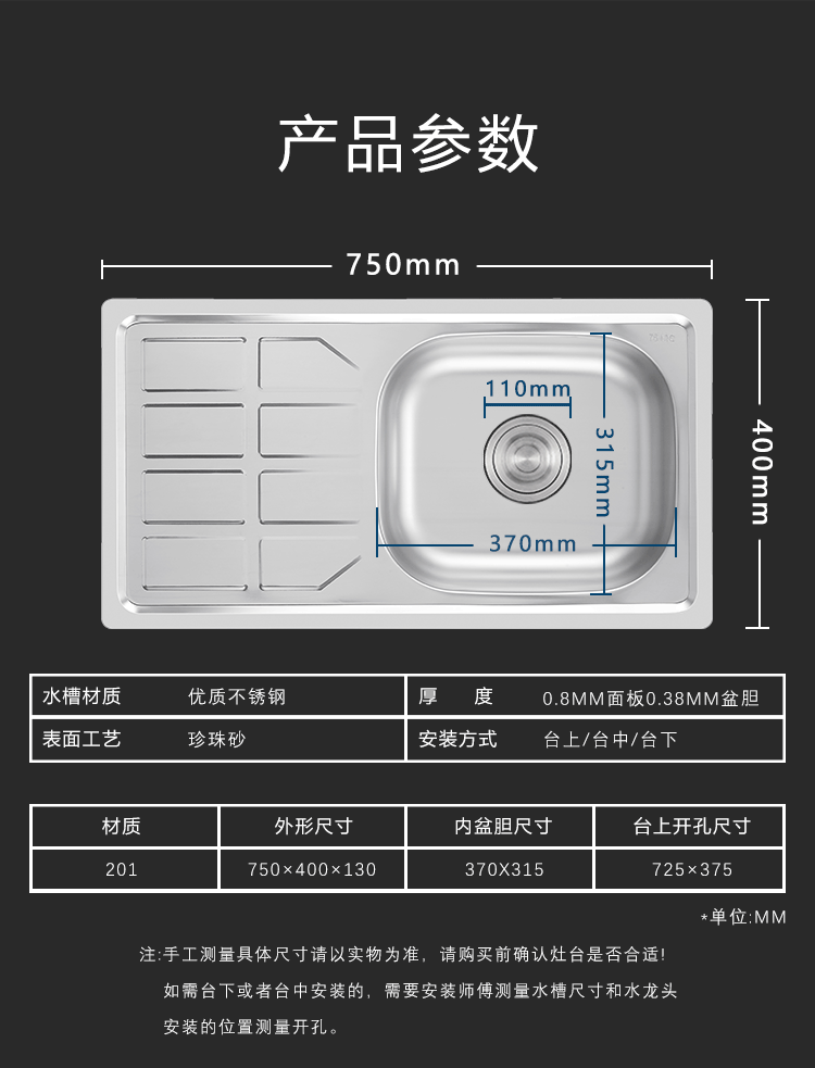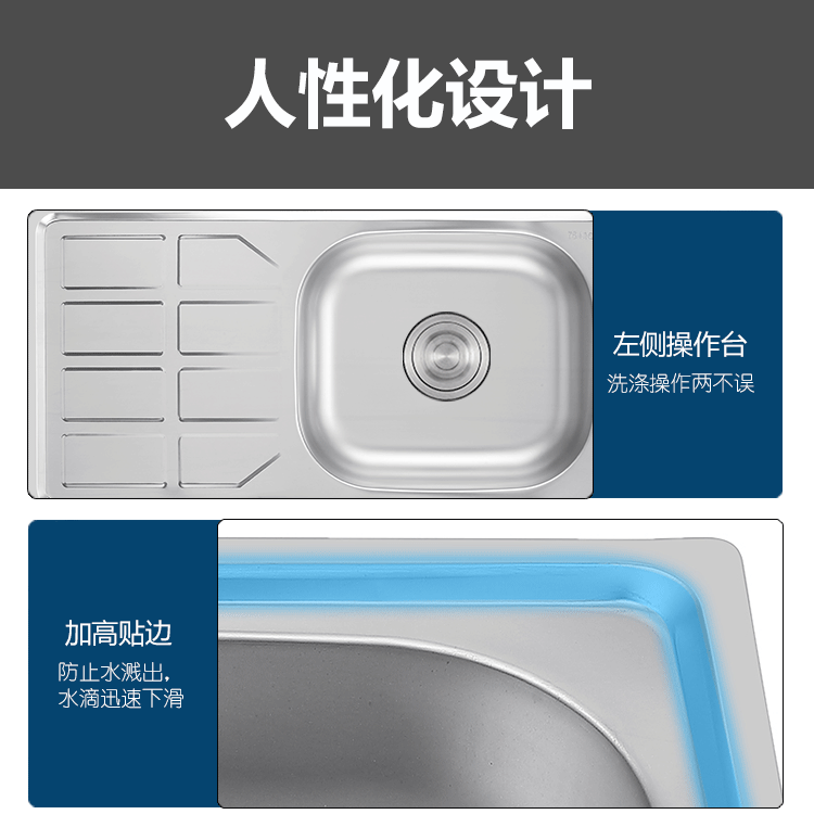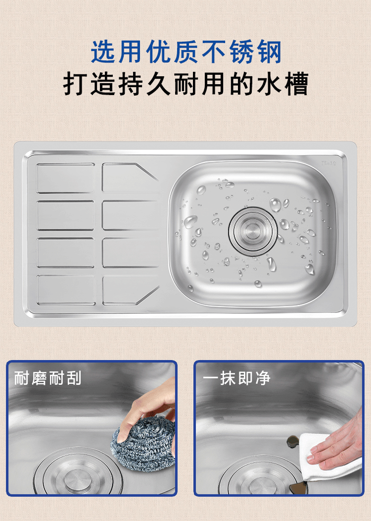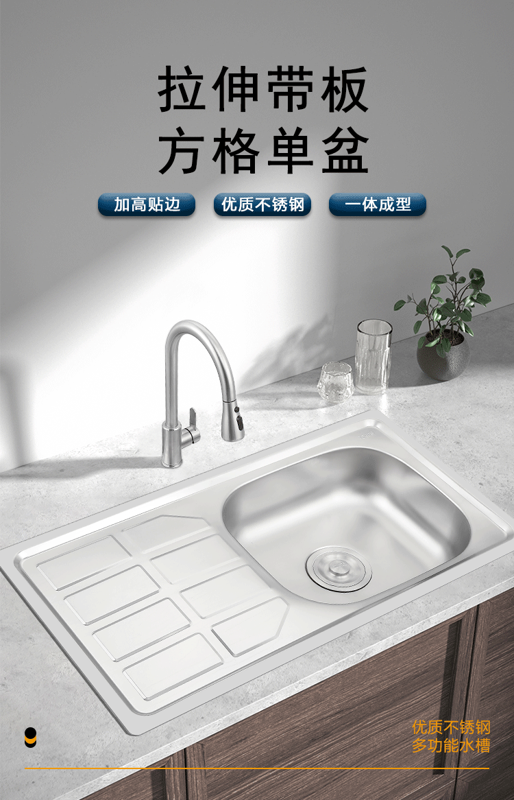 跨境源头工厂加工定制批发厨房不锈钢水槽拉伸单盆带板工作台操作台珍珠砂水池洗菜盆洗菜池洗手池单槽stainless steel kitchen sink factory