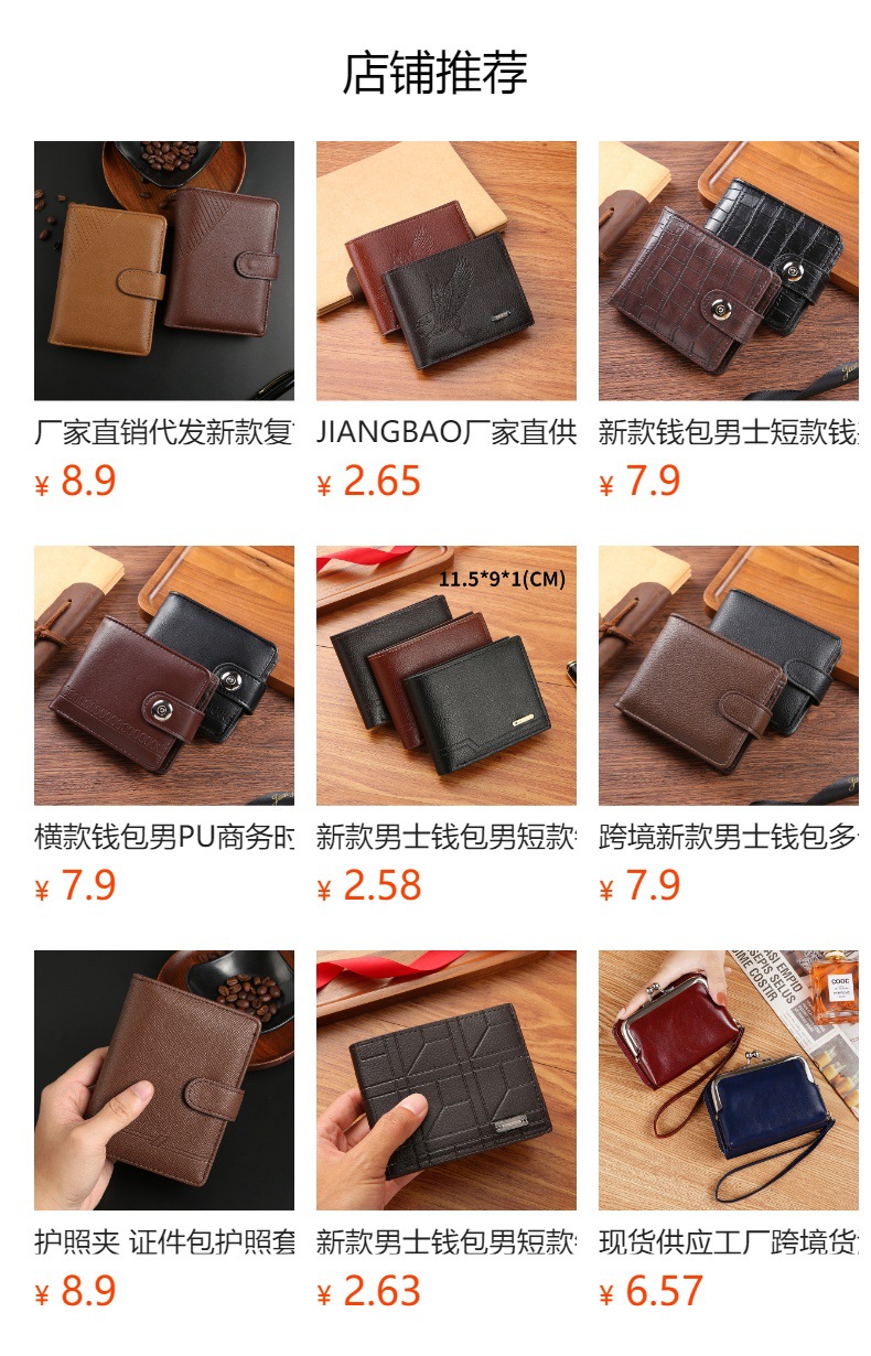 Оптовая фабрика мужских кошельков из PU-кожи, короткий кросс-бордовый кошелек на молнии с застежкой, новый кошелек, монетница