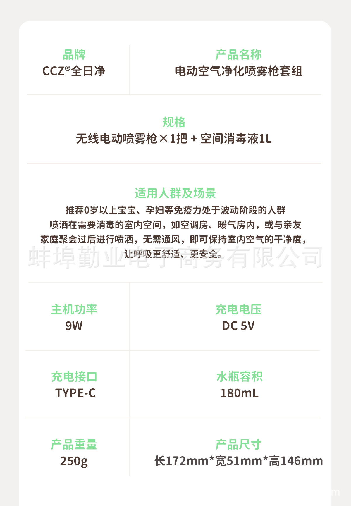 Электрический распылитель CCZ для дезинфекции на весь день, домашний комплект защиты 1000 мл