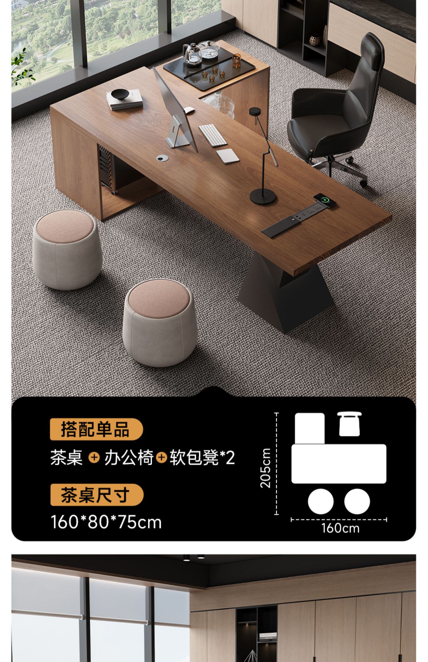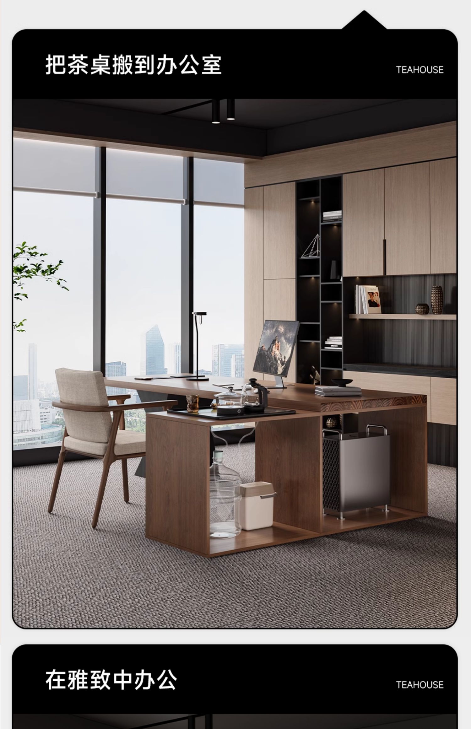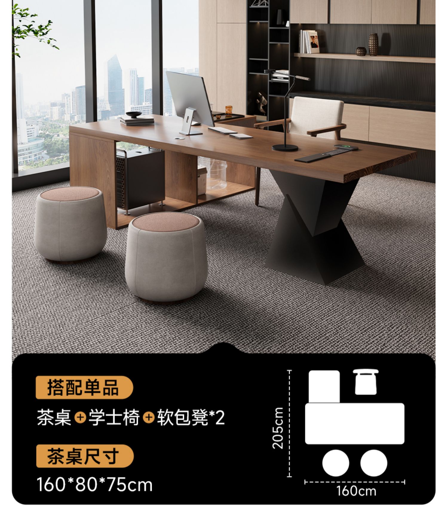 Простой современный стол из массива дерева с интегрированным чайным столиком, президентский стол, офисный стол, легкая роскошь и высокий уровень