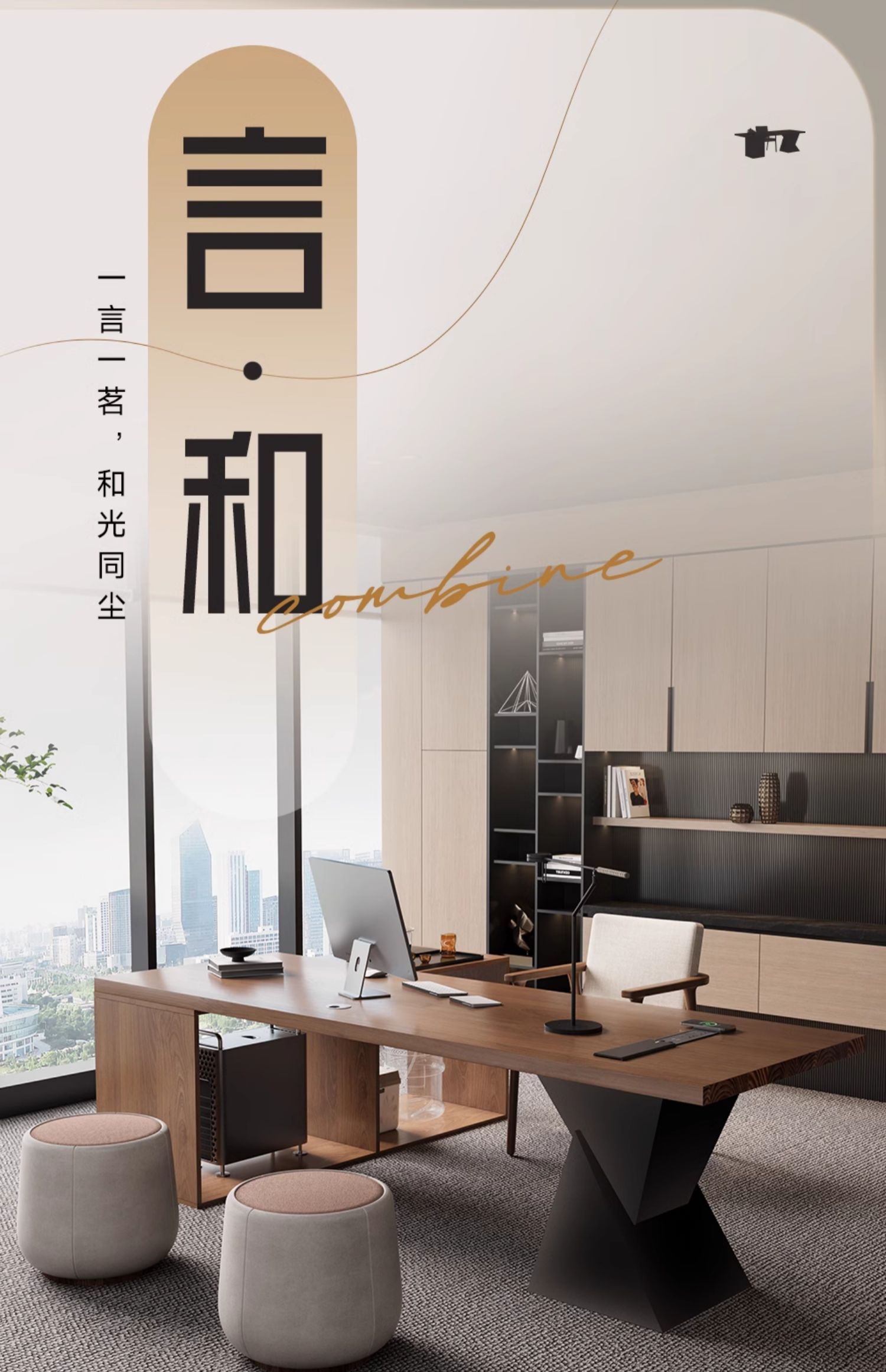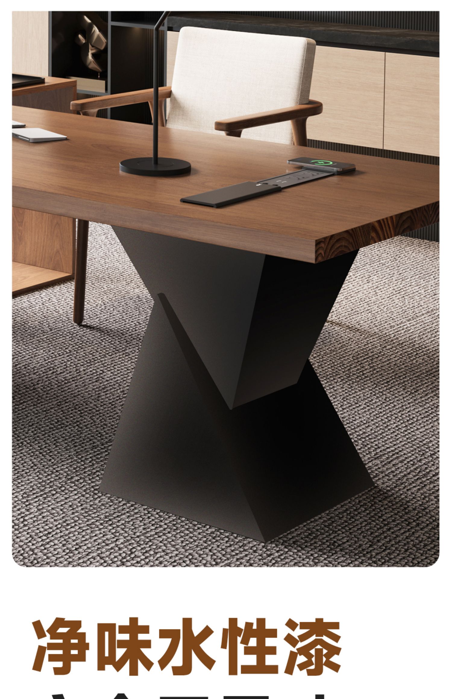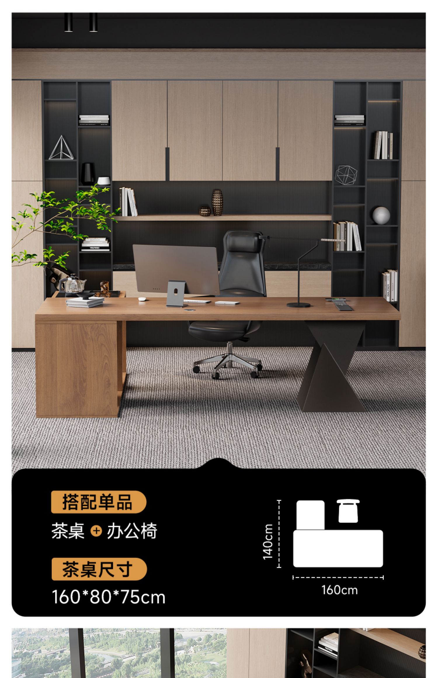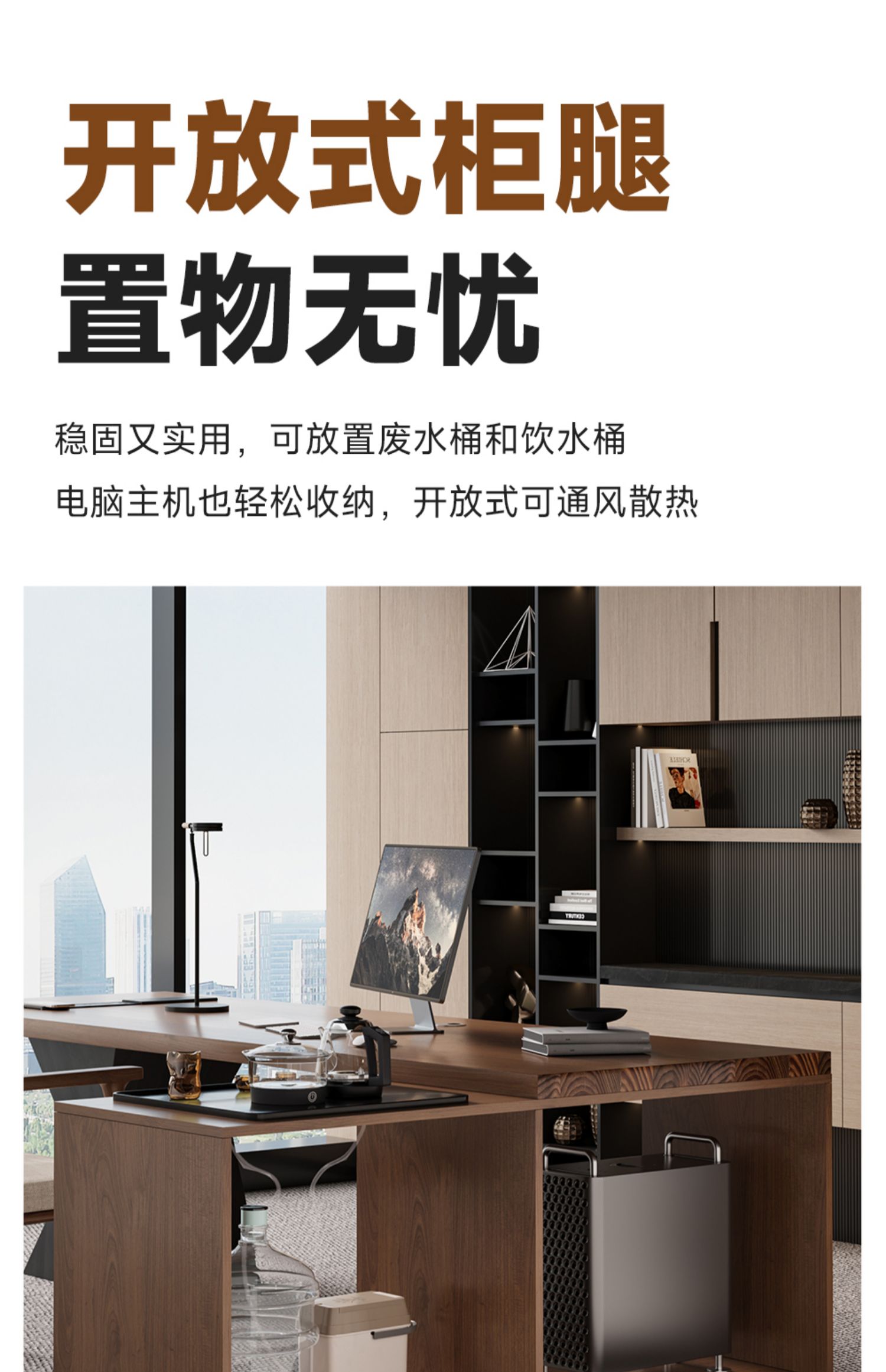 Простой современный стол из массива дерева с интегрированным чайным столиком, президентский стол, офисный стол, легкая роскошь и высокий уровень