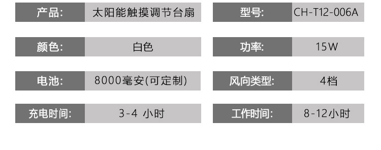 ![]() | White | Ct1202a fan 12inch set (including battery + charger + solar photovoltaic panel) | ¥82.0 / ≈ 989 ₽ | 728 | 5992461843430 |
