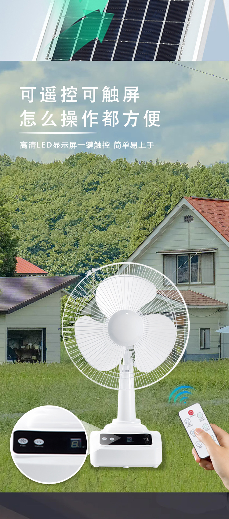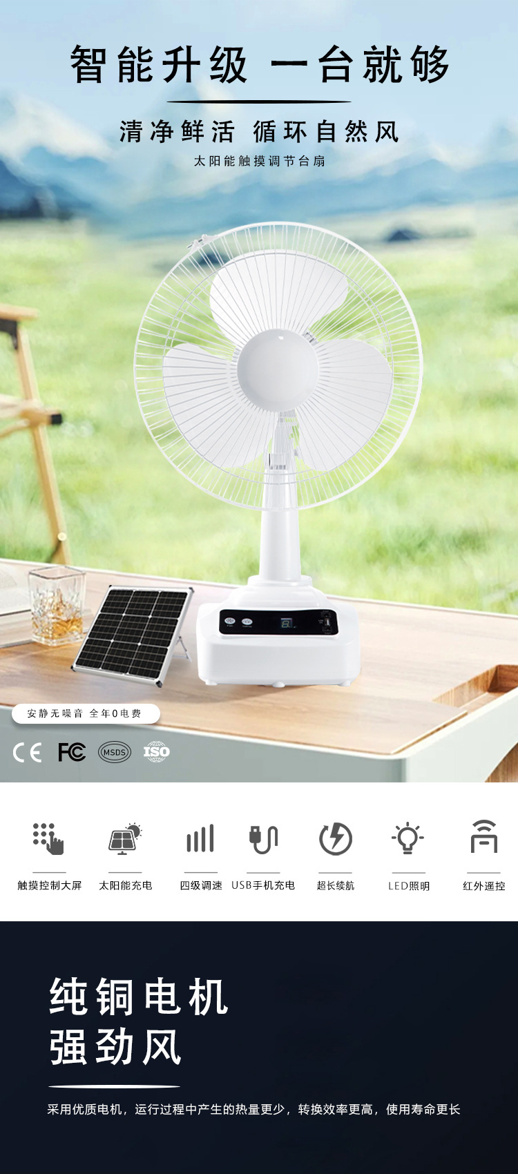 12 дюймовый солнечный вентилятор, новая модель для внешней торговли, перезаряжаемый вентилятор с подсветкой, длительное время работы, с дистанционным управлением, USB, для улицы