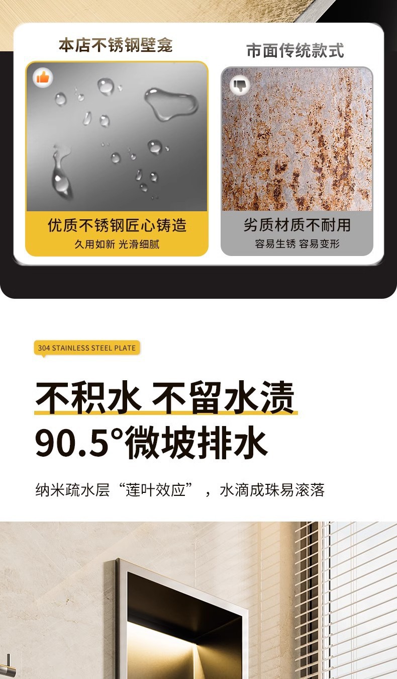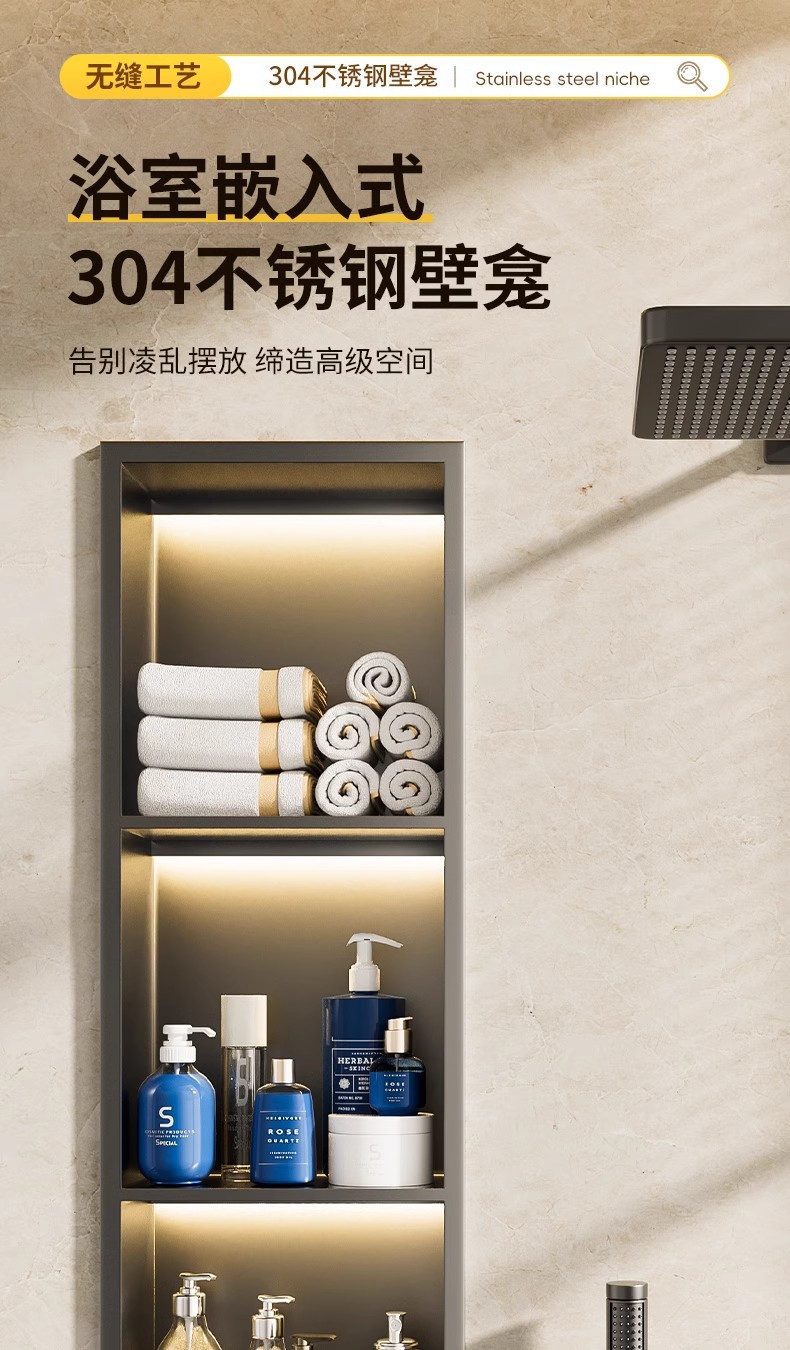 Шкаф для туалета из нержавеющей стали 304, встроенная ниша для ванной, металлическая полка для хранения туалета