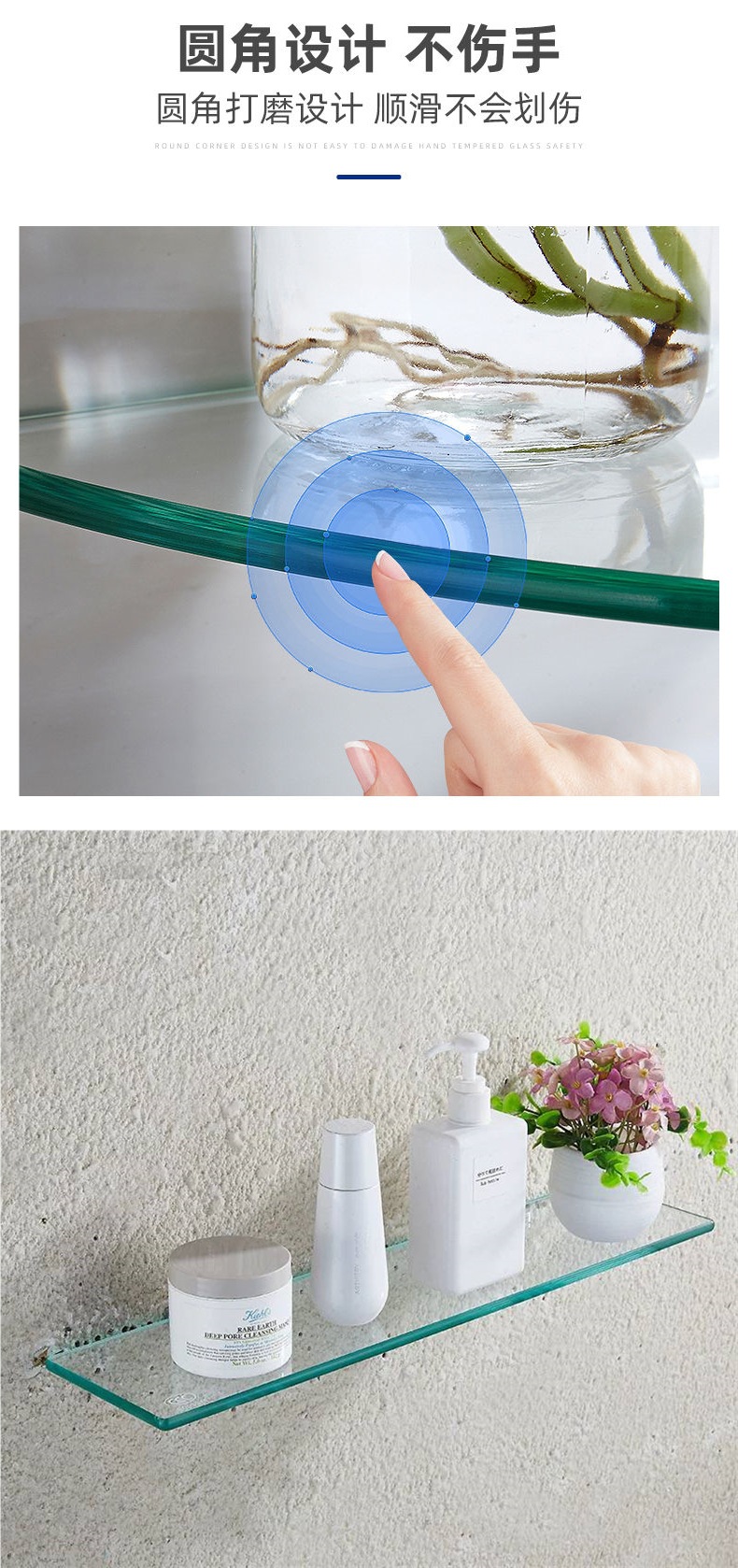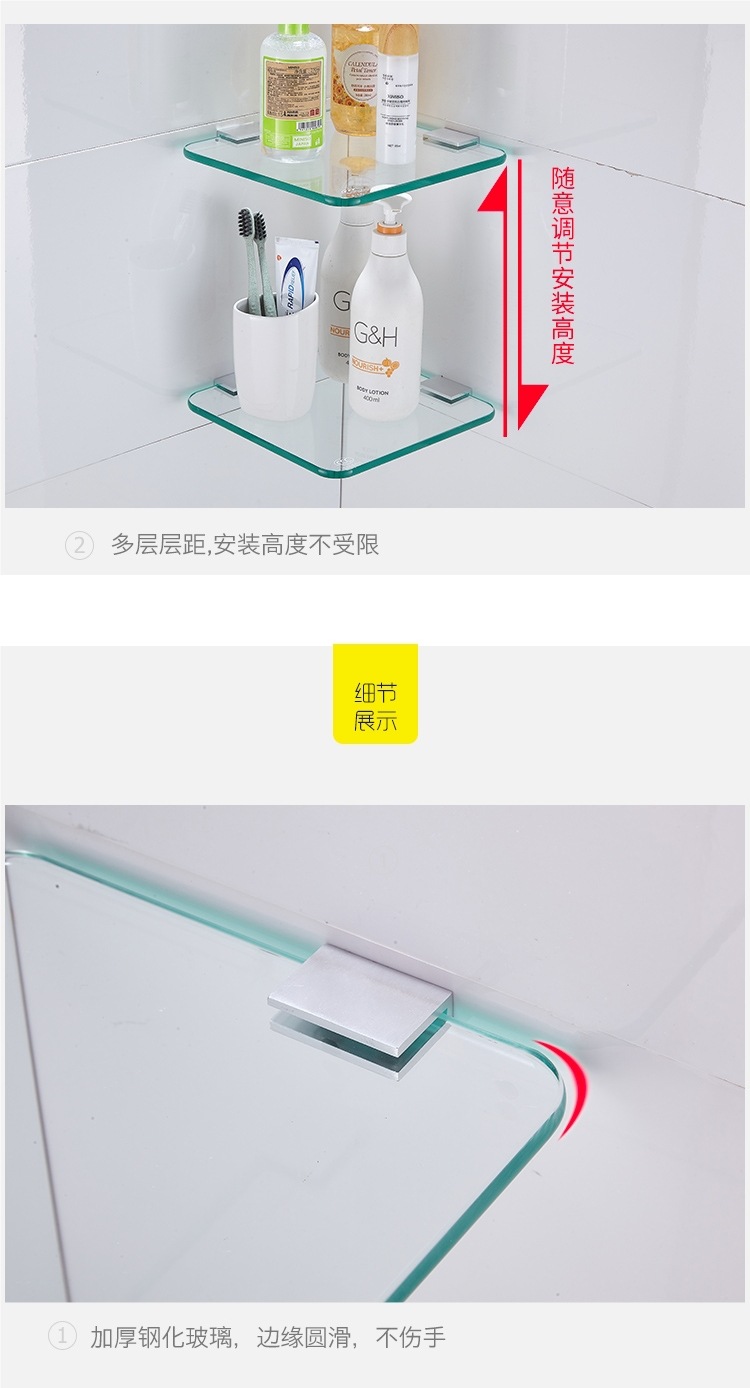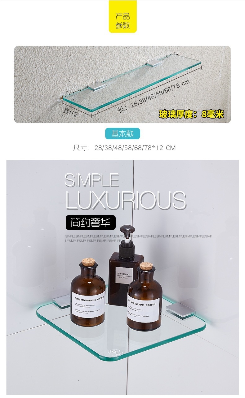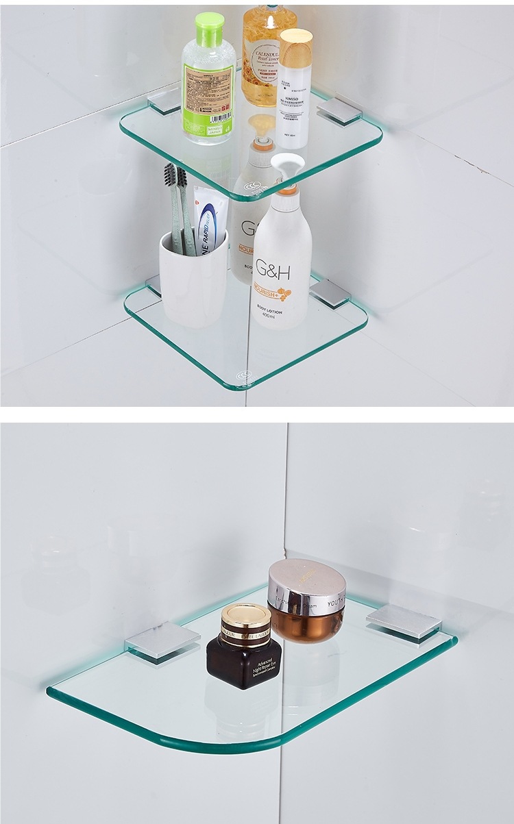 Одно- и двухъярусная стеклянная полка для хранения, настенная, без сверления, поднос для зеркала в туалете, полка для косметики