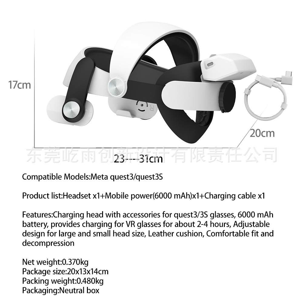 - 适配 Meta Quest 3/quest3S,完美平衡设备前后重量,避免前重后轻的不适感。