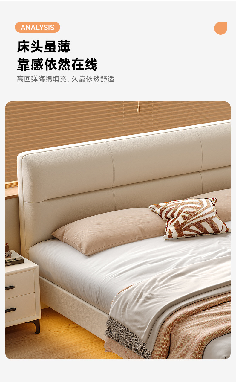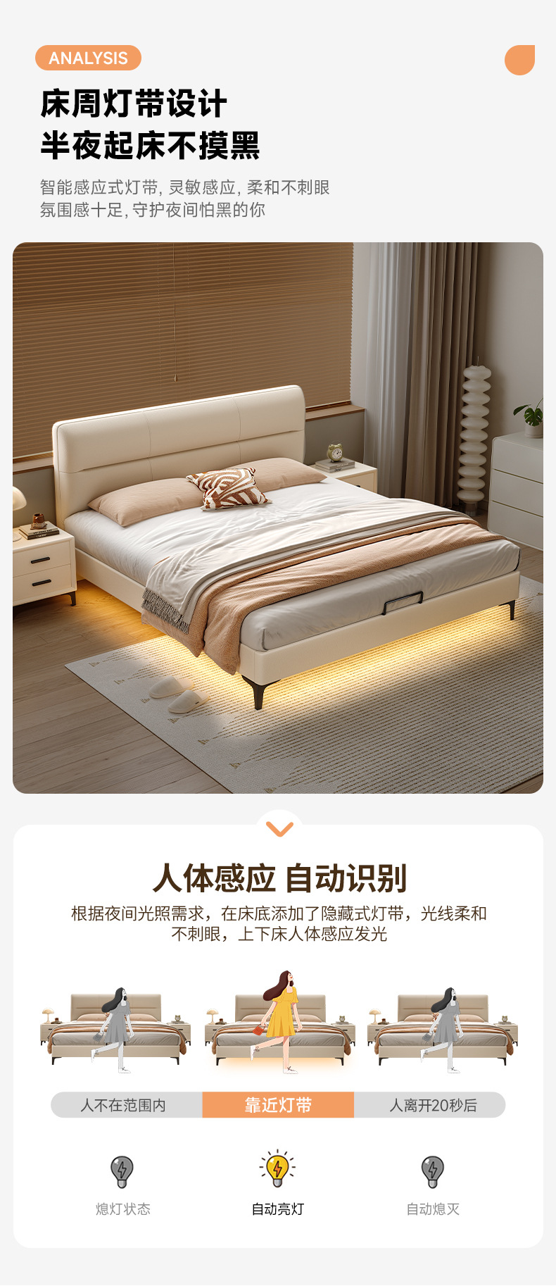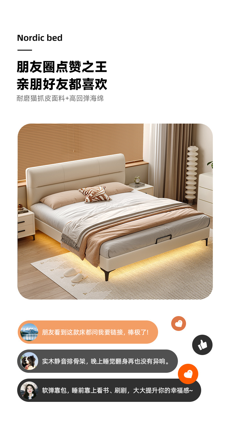 Итальянская стильная минималистская легкая роскошная кожаная кровать, современная тонкая двуспальная кровать 1.8м для свадьбы