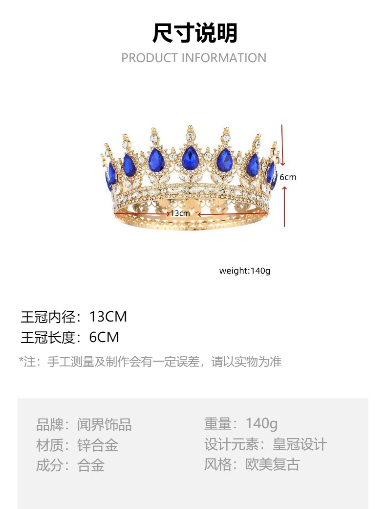 Ретро алюминиевая круглая корона с кристаллами для взрослых, аксессуары для церемоний, тиара для принцессы