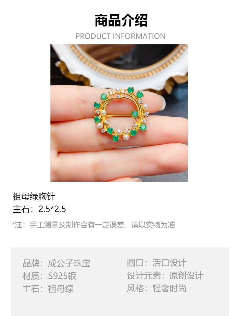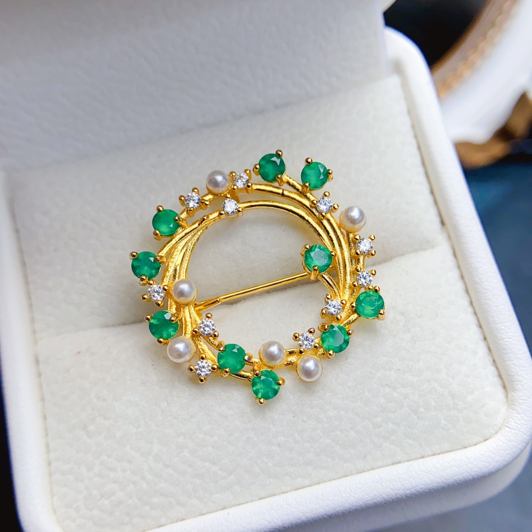 Новая брошь из натурального изумруда, инкрустированная серебром S925, основной камень 3*3мм, оптовая продажа женских украшений