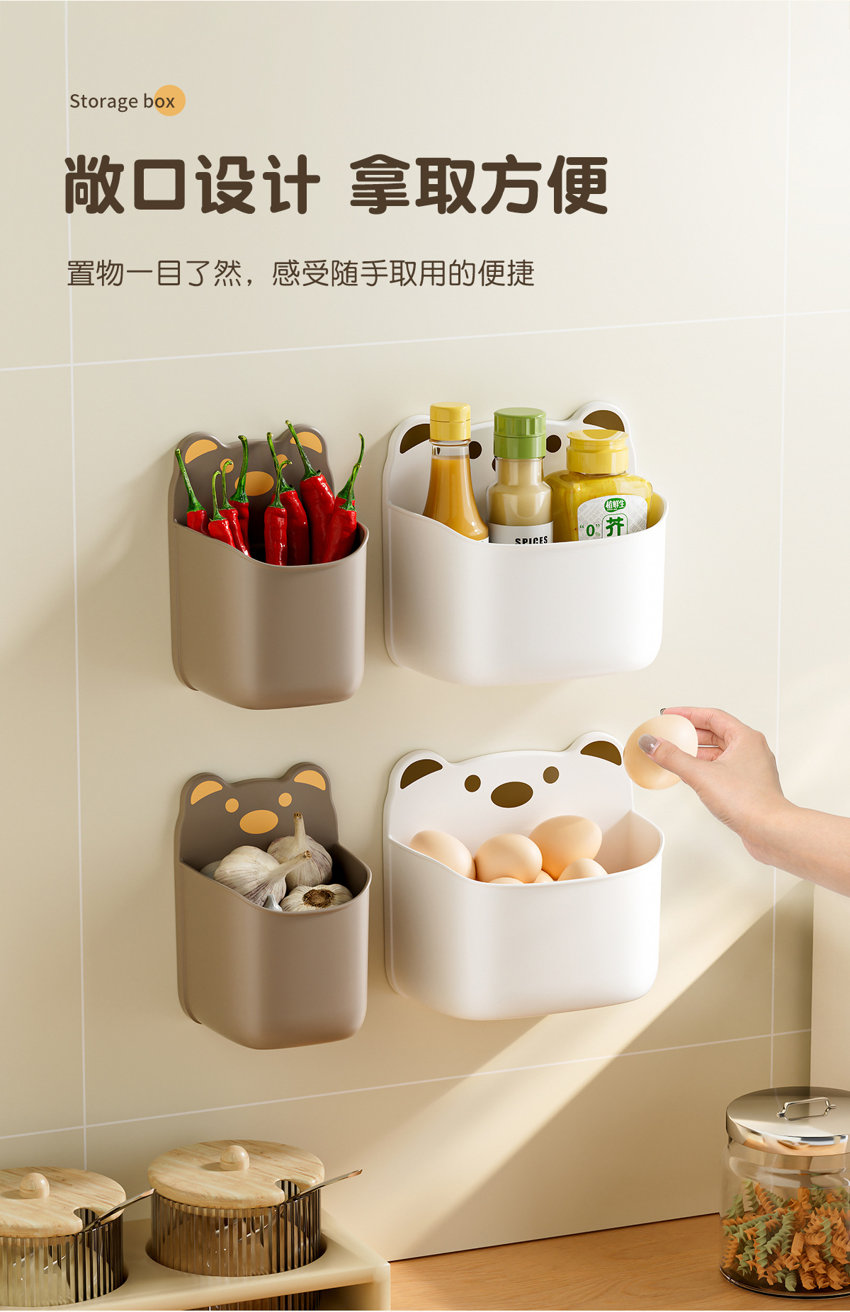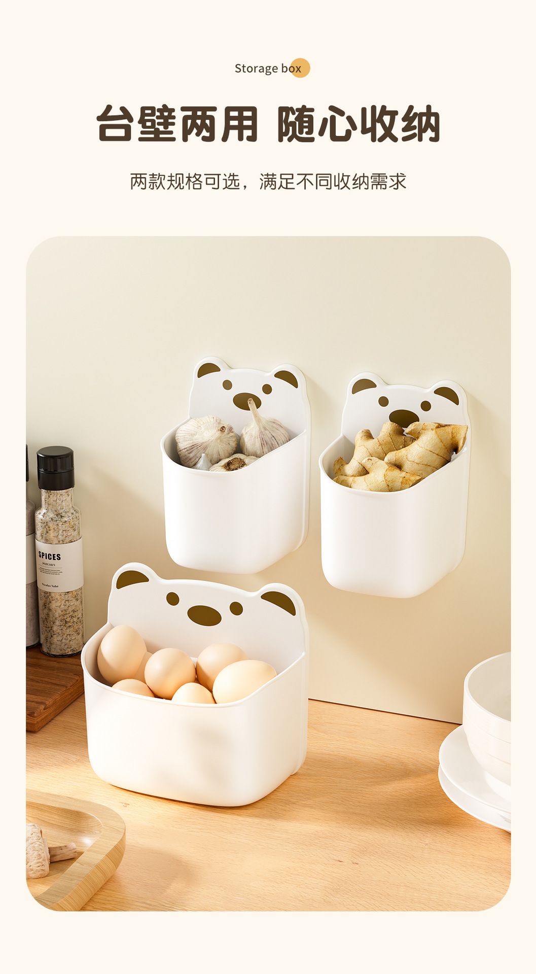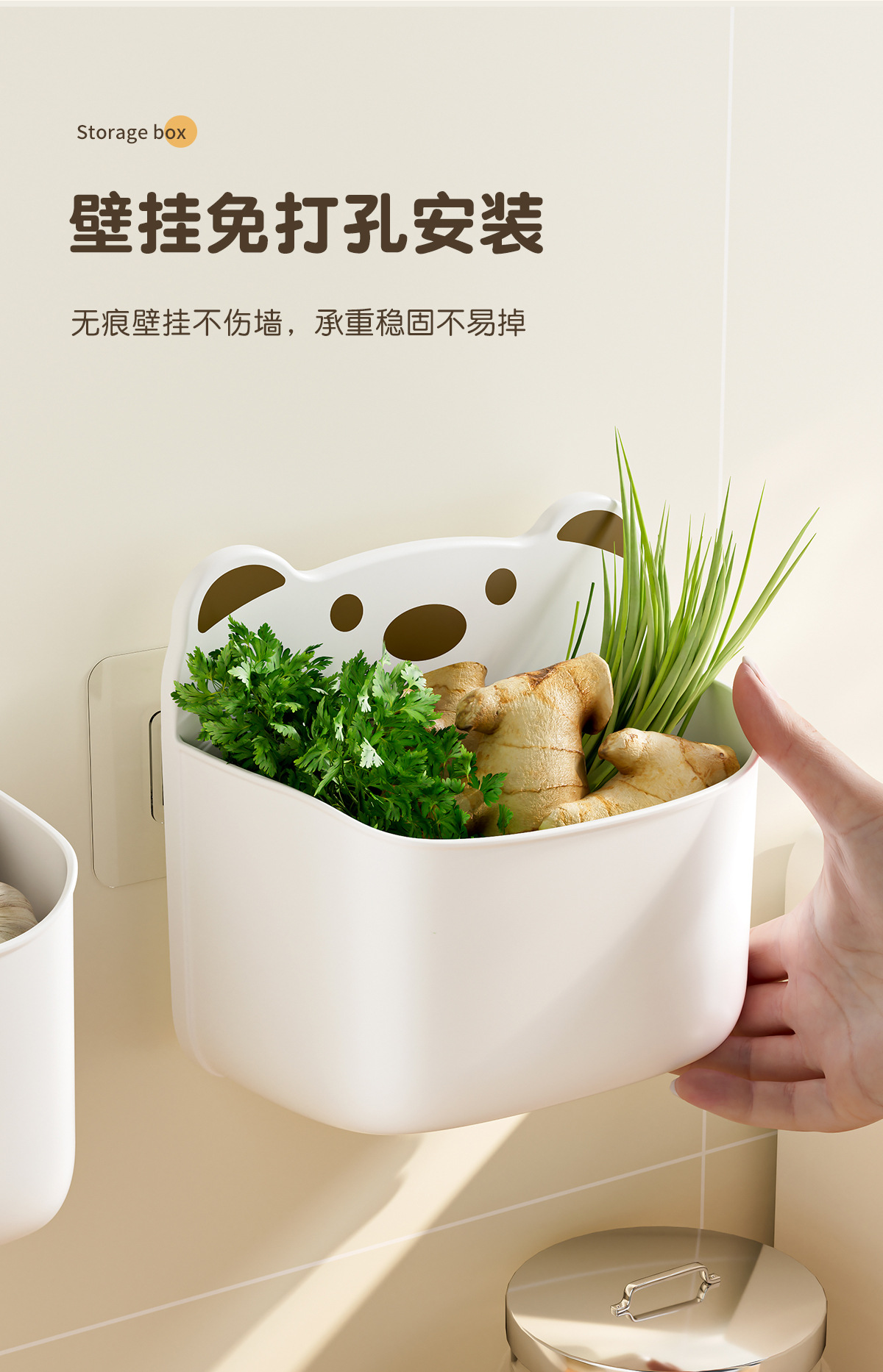 Настенная коробка для хранения в виде мультяшного медведя, для лука, имбиря и чеснока, без отверстий, настенное хранилище, боковая вешалка для холодильника, синяя