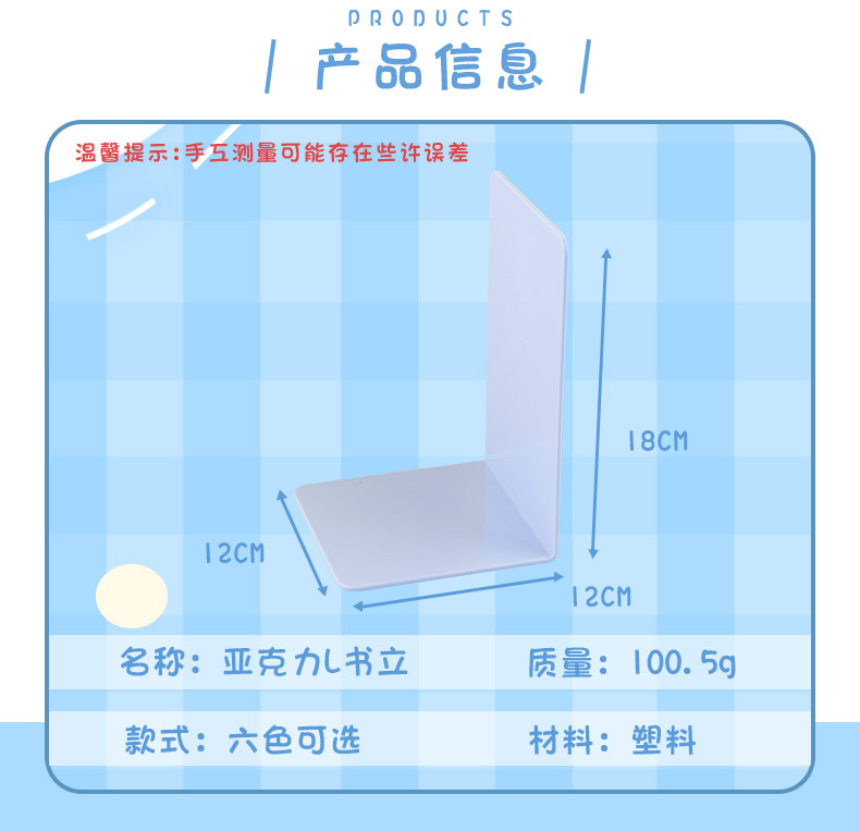 ![]() | Transparent single bookend (take 2 to make a pair) | 12*12*18 | 1шт: ¥1.30, 500шт: ¥1.28, 1000шт: ¥1.25 | 9995979 | 5941593599768 | |