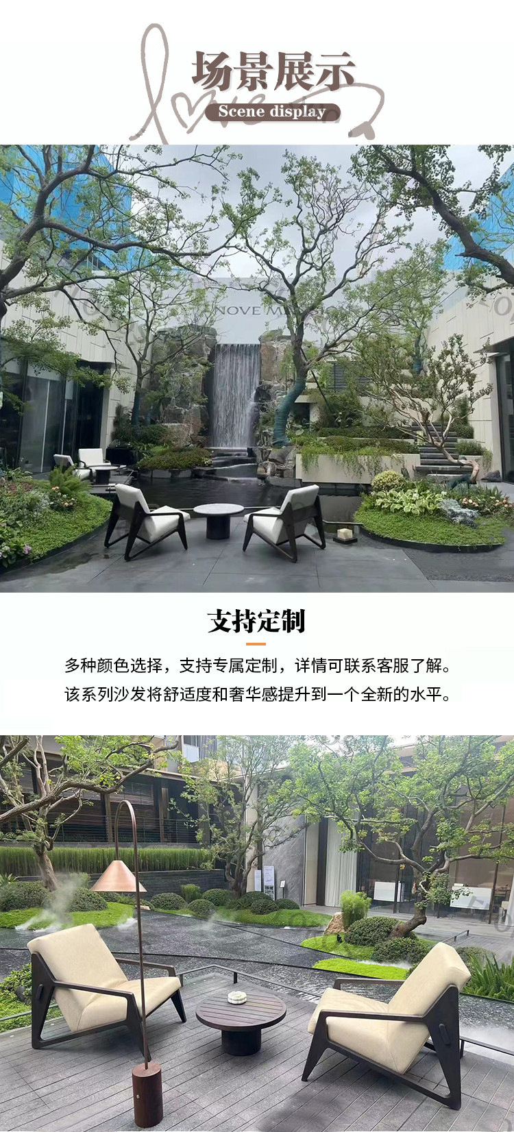 户外沙发铝合金庭院别墅园林酒店样板房售楼部防水防晒家具