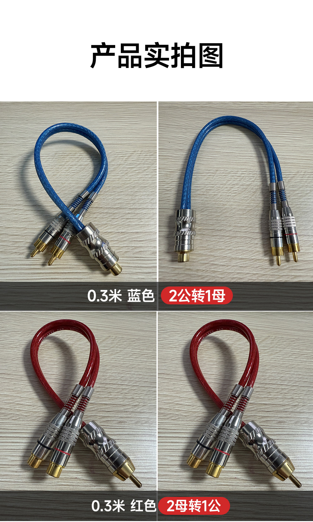 厂家直销 2RCA对2RCA 透明编织线 一母两公 Y线 音频装配线 功放低音炮