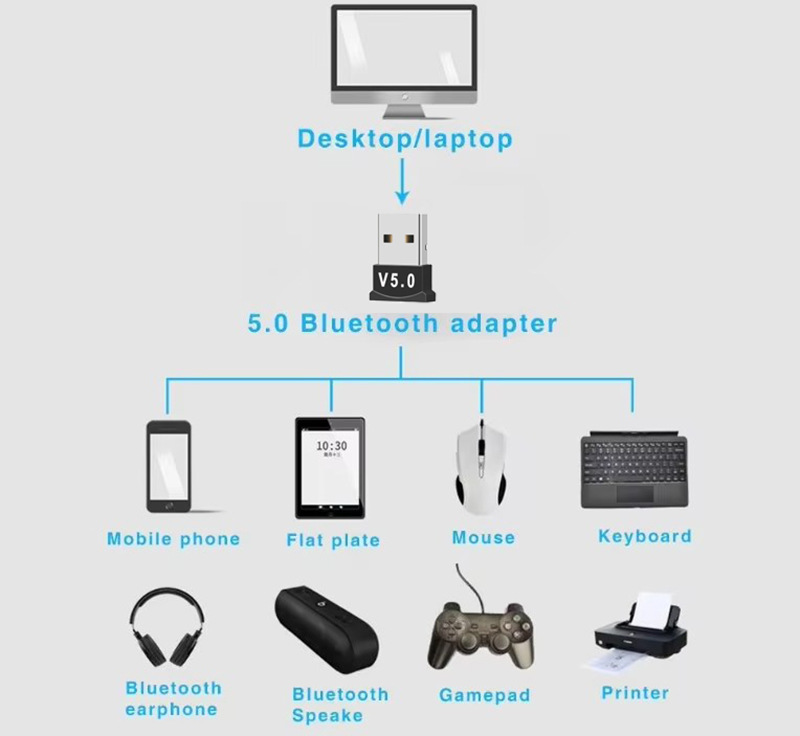 Bluetooth адаптер 5.0 без драйверов для ноутбука и настольного компьютера, USB Bluetooth приемник, беспроводной аудио конвертер
