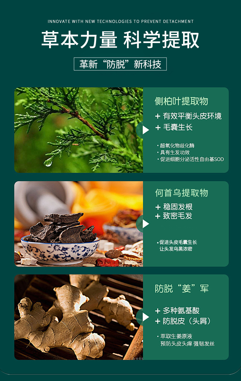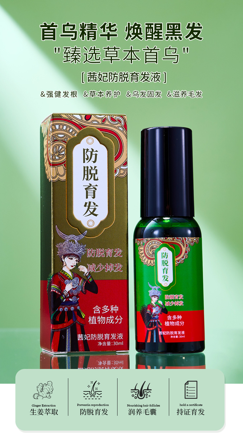 Жидкость для роста волос Qianfei с экстрактом имбиря и Polygonum multiflorum, спрей 30 мл