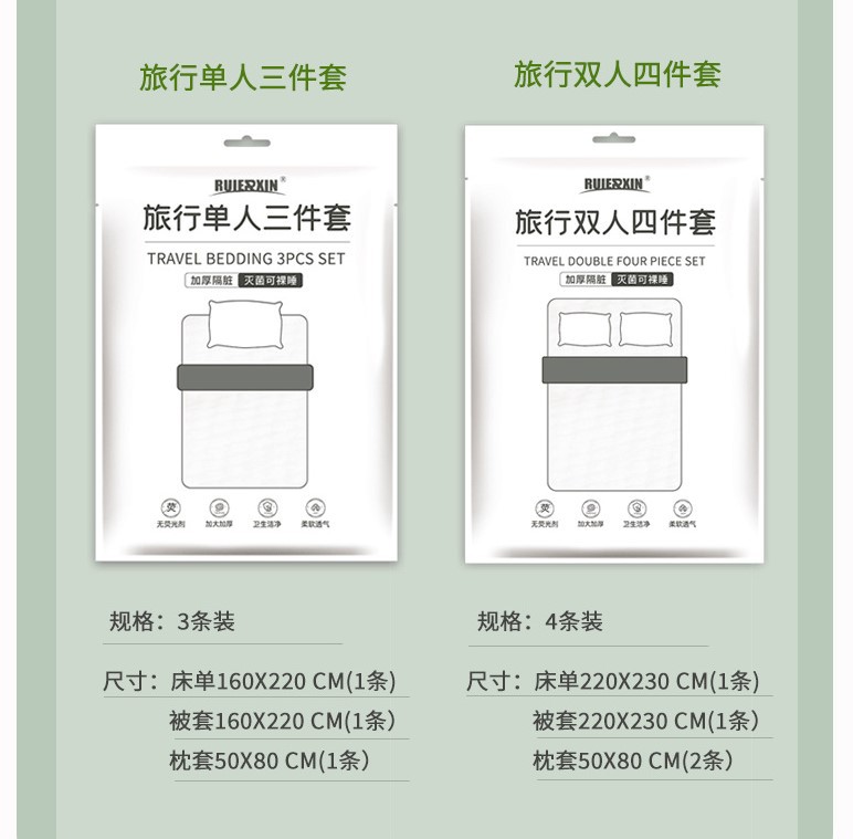 Одноразовое покрытие для кровати, комплект из четырех предметов, гостиничные портативные принадлежности для путешествий, двойные простыни