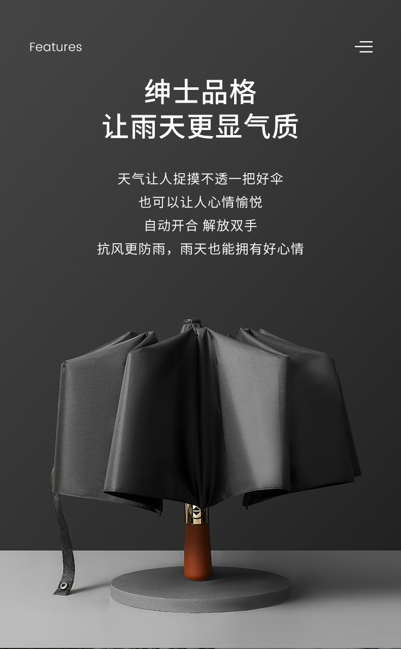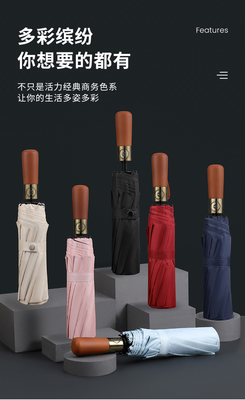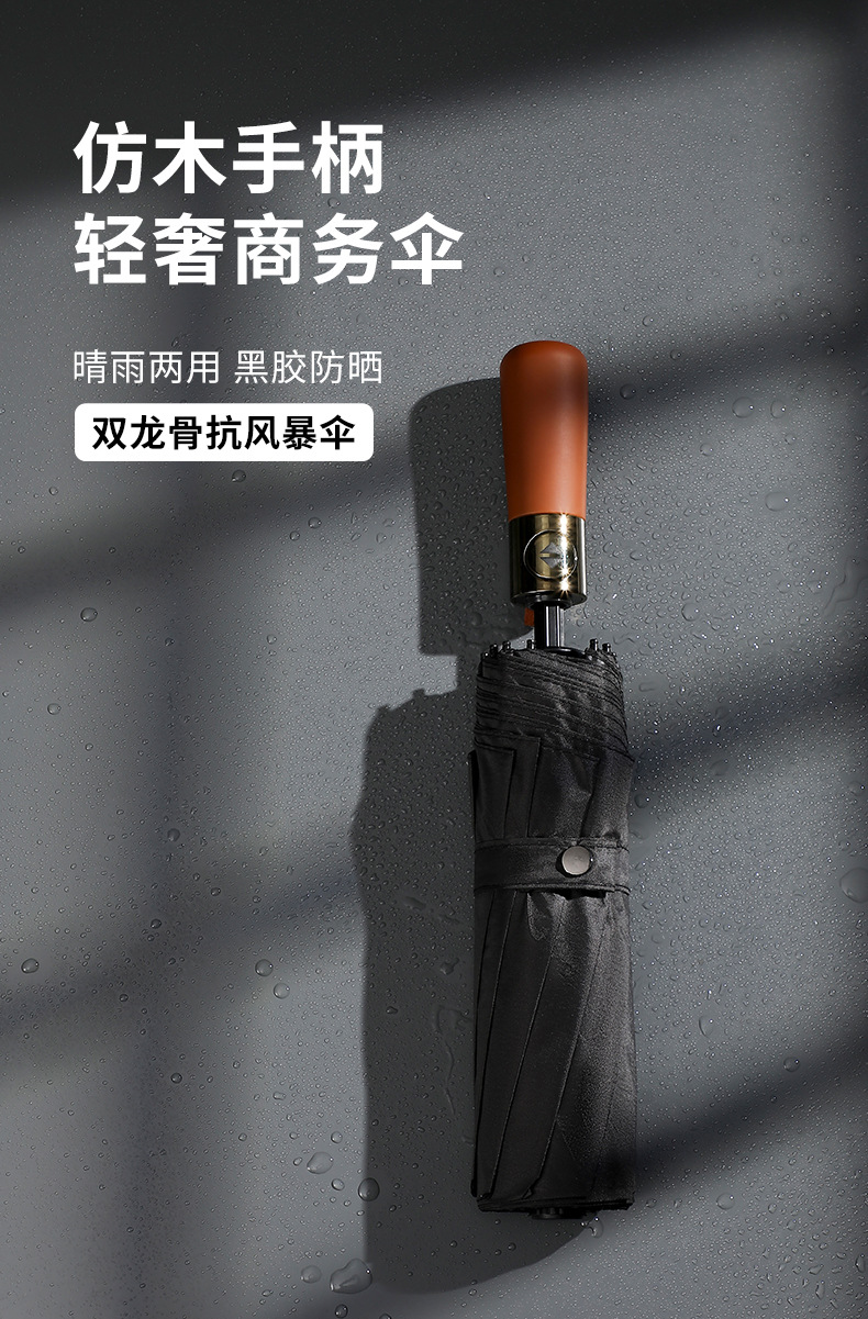 Индивидуальный рекламный зонт, полностью автоматический, простой зонт с имитацией деревянной ручки, 10 спиц, прочный, водоотталкивающий и устойчивый к ветру, скидка 70% на двойной зонт