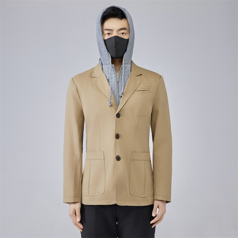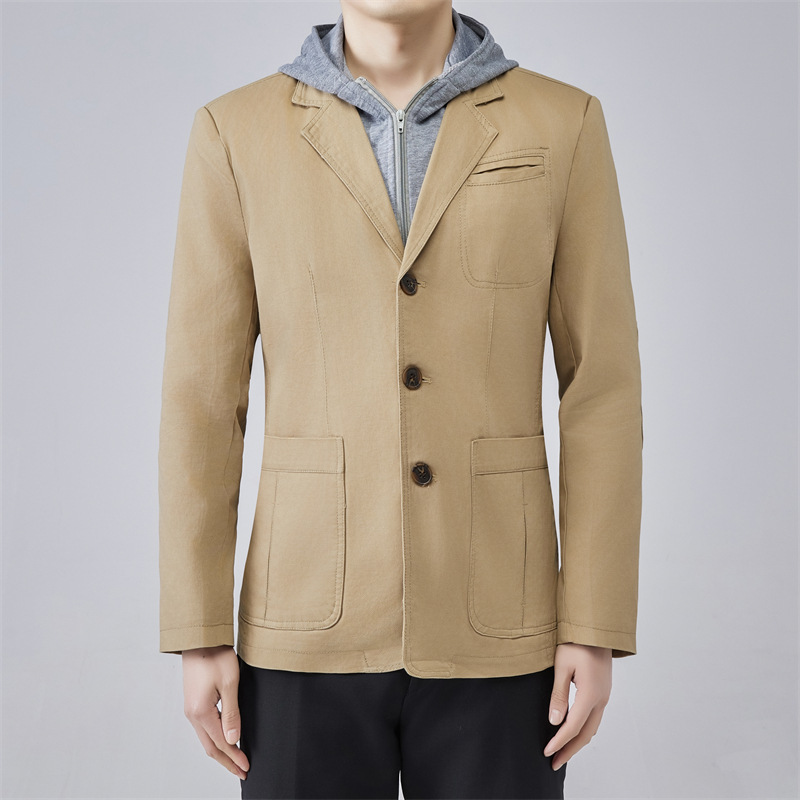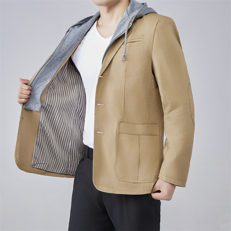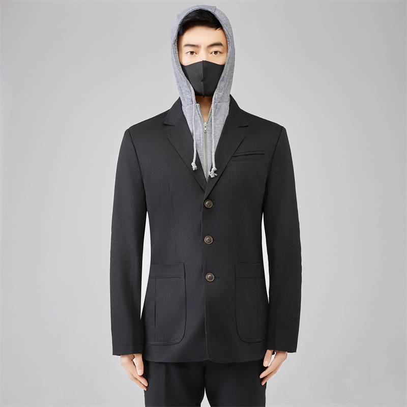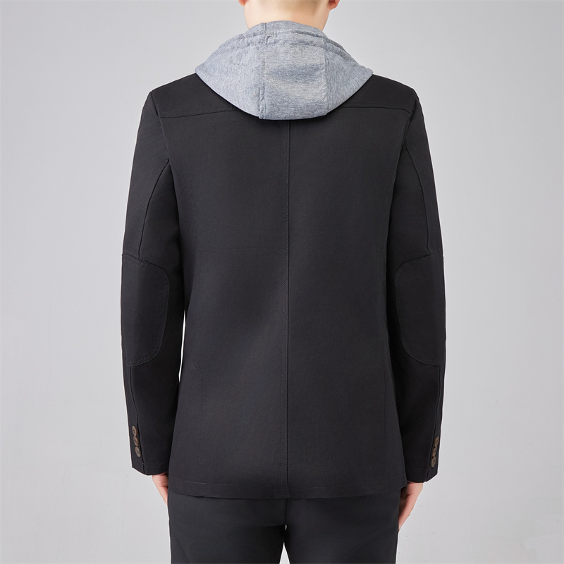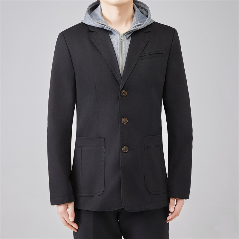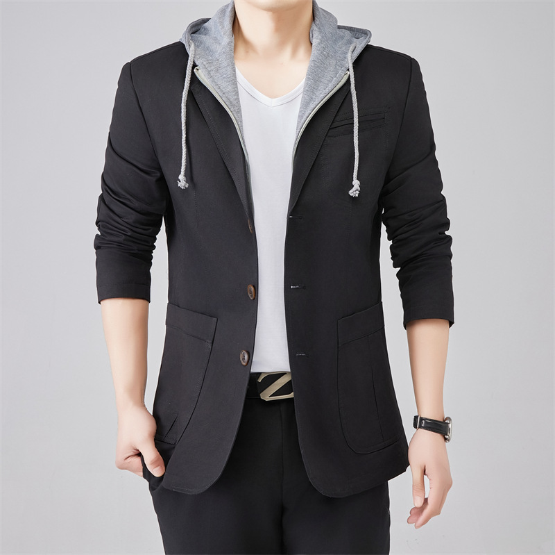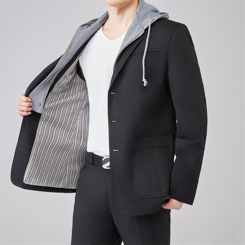 Бизнес костюм больших размеров, фейковый двухпредметный, с капюшоном, пиджак с тремя пуговицами, мужской, весенне-осенний, стильный повседневный пиджак