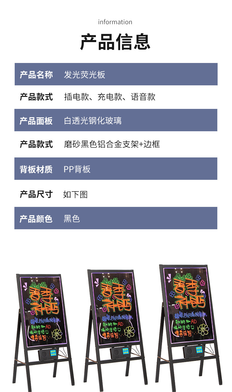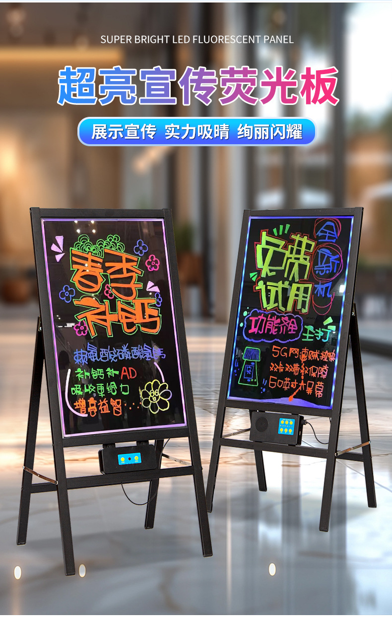 Светящаяся черная доска, перезаряжаемая светодиодная электронная флуоресцентная доска, рекламная доска для магазина, ночного рынка, вертикальный дисплей