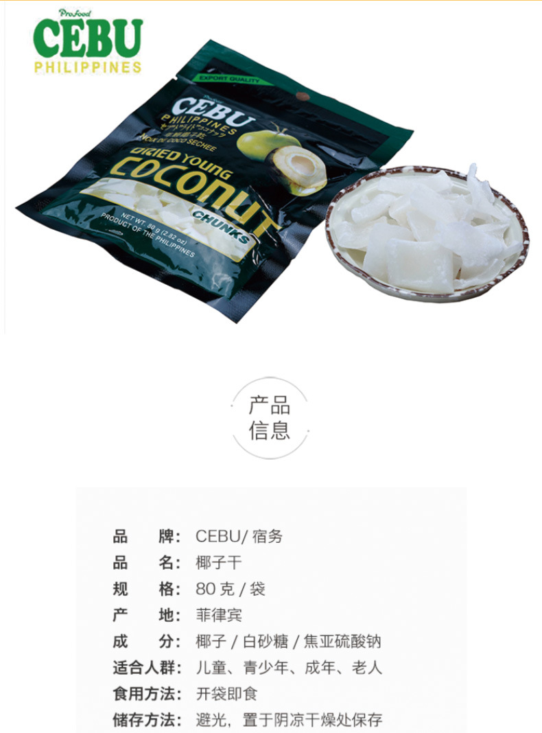 Импортированные из Филиппин сушеные кокосы CEBU 80 г консервированные фрукты закуски для офиса