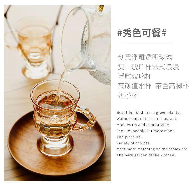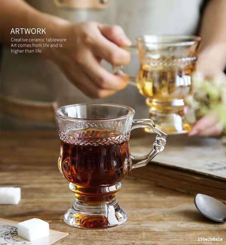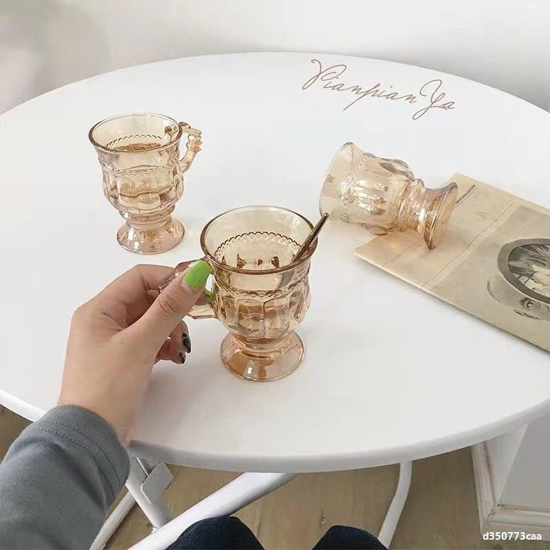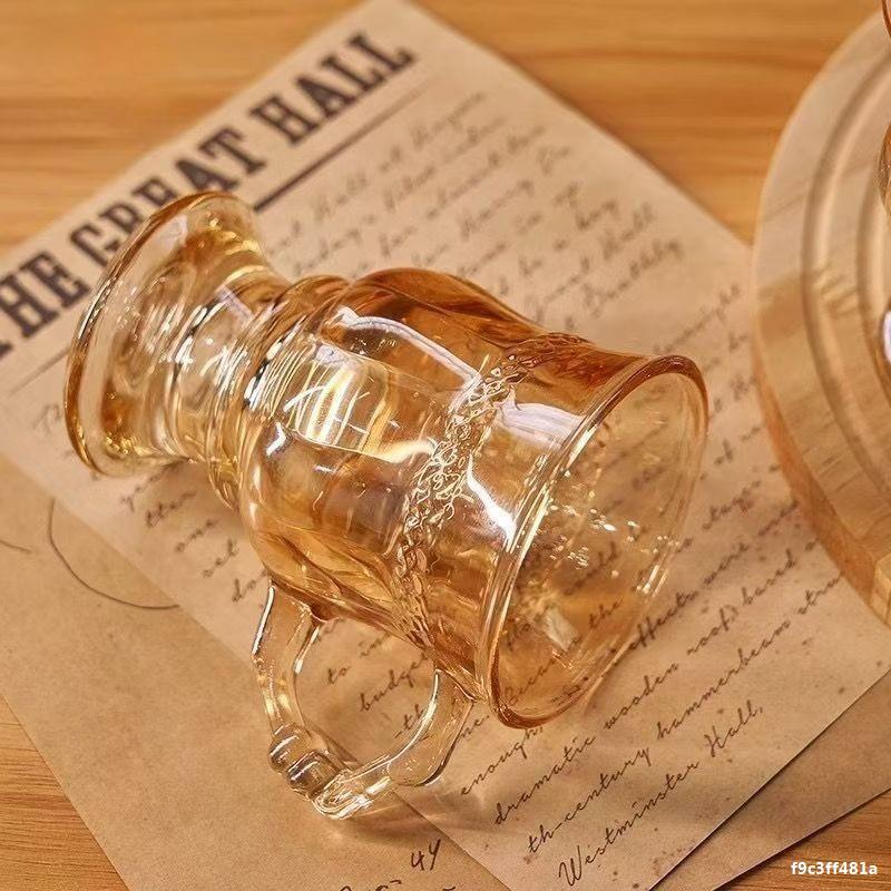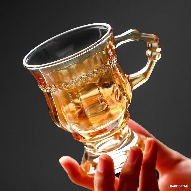 Винтажный анаглифический стакан с ручкой, высокий янтарный бокал, ценная девичья рюмка, кофейная чашка