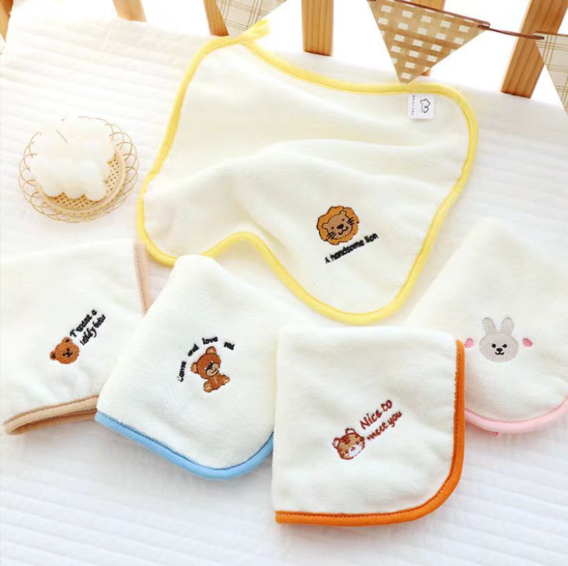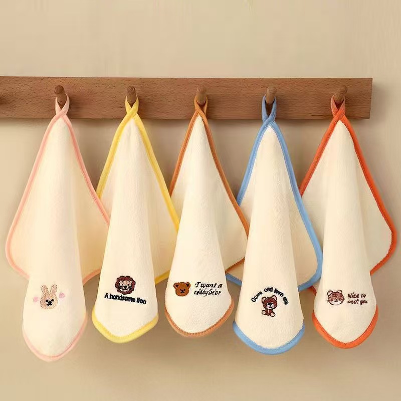 Кросс-бодерный коралловый велюровый мультяшный детский полотенце для лица, домашнее использование, для купания, слюнявчик, маленькое квадратное полотенце