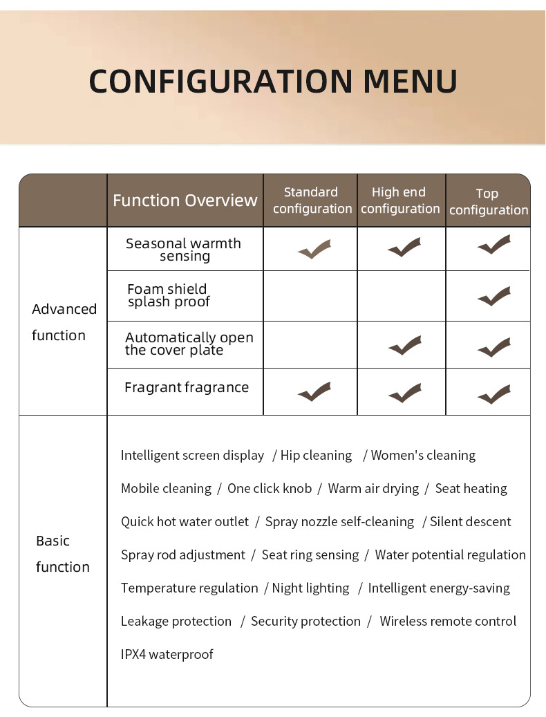 Дополнительные функции Instant type, water temperature regulation, Wash buttocks, Women wash., Seat ring heating, water pressure regulation, Warm air drying, nozzle self-cleaning, Automatic deodorization, Mobile cleaning, remote control nozzle