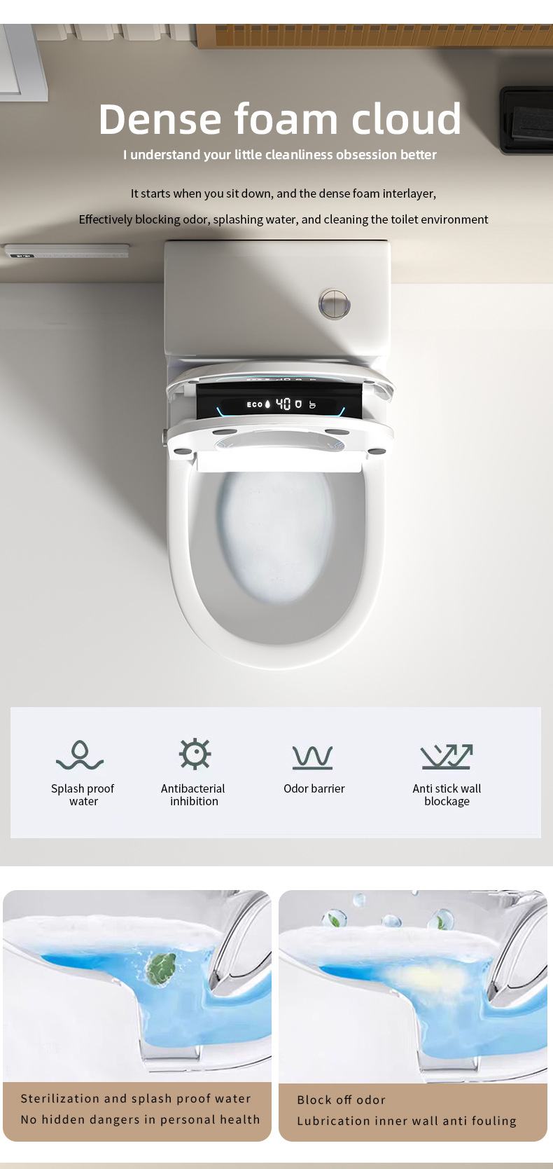 Умная крышка унитаза с V-образным пенным экраном, автоматическая очистка и сушка, дистанционное управление