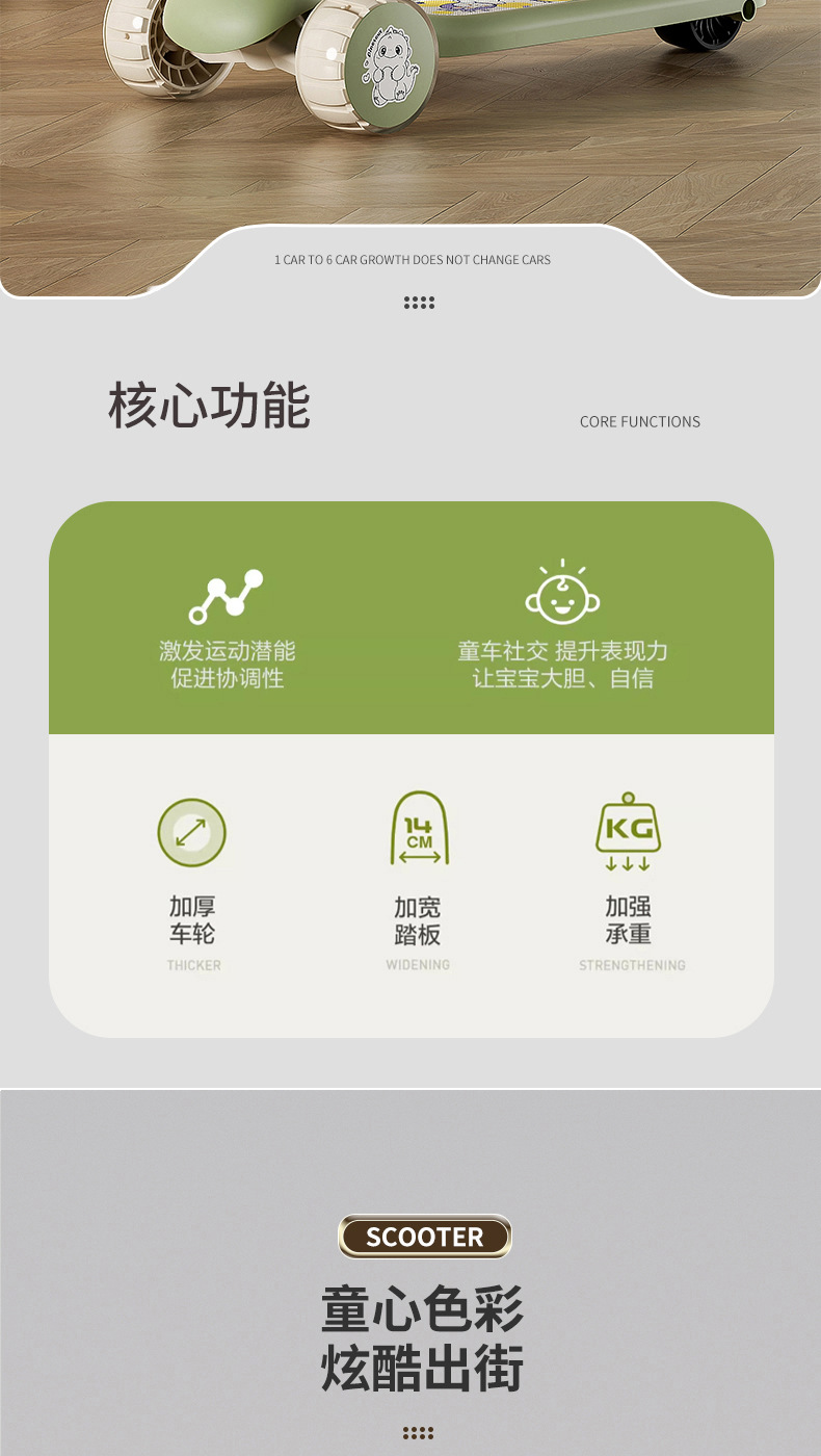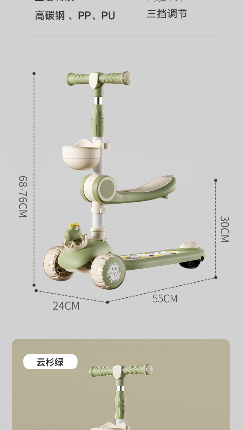 Самокат для детей 1-5 лет, детский скользящий самокат, трехв одном