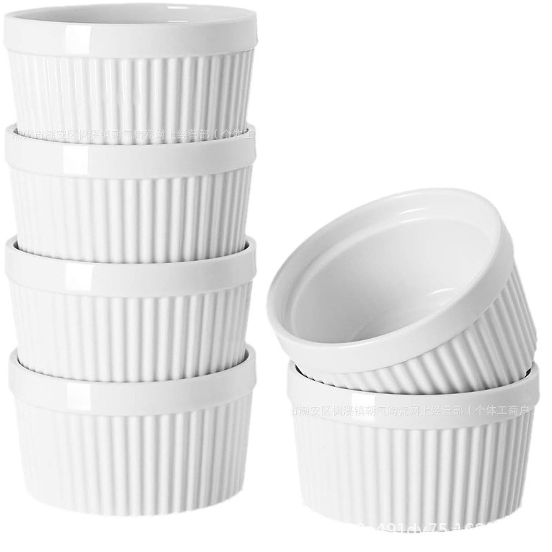 用途广泛】这款小餐盘的尺寸为 10*5cm,容量为 7 盎司,非常适合单独食用、小份量和配菜。是制作蛋奶酥、奶油布丁、熔岩蛋糕和蘸酱等各种菜肴的理想之选。