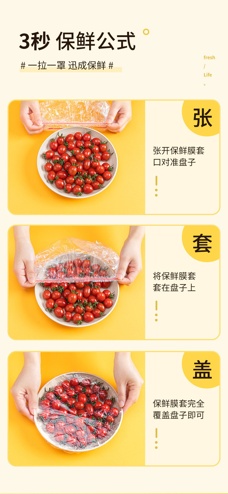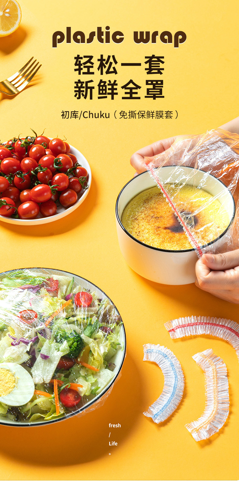 Одноразовая пленка для продуктов, экономичный пакет для хранения пищи с эластичным отверстием из пленки PE