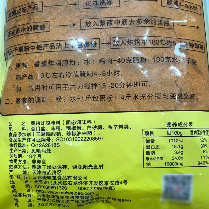 Спецификация Maiweibao spicy fried chicken marinade 1kg