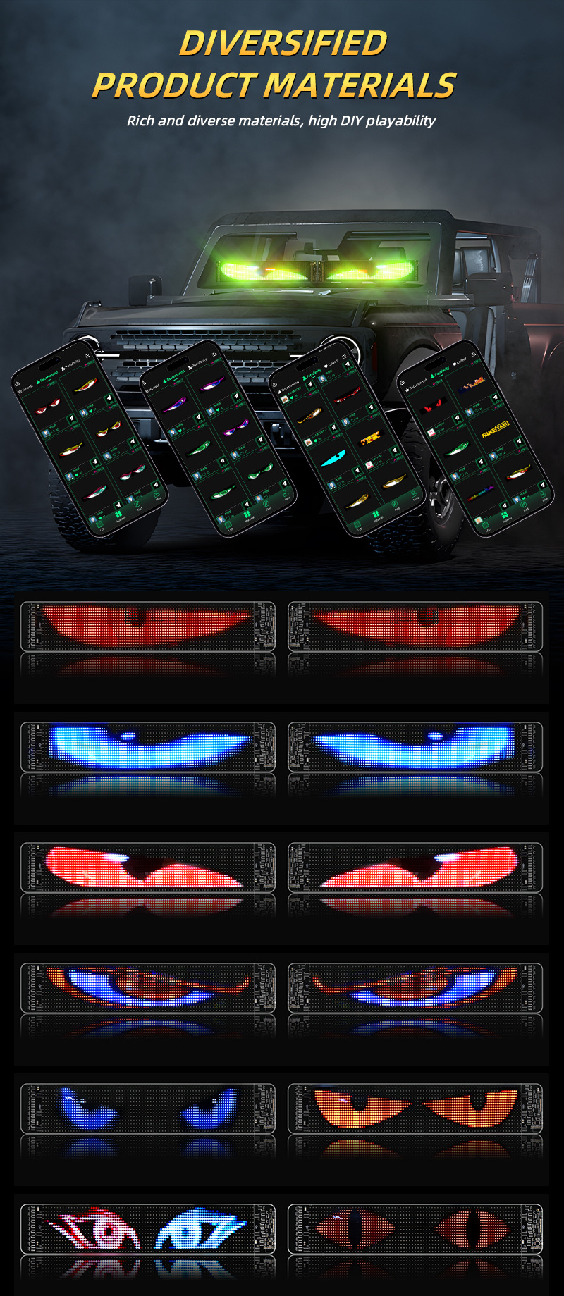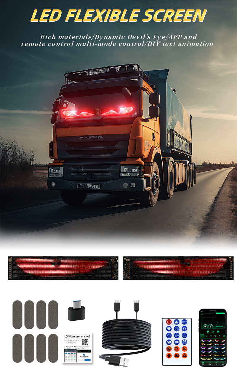 led软屏 汽车前后窗玻璃rgb柔性显示屏 卡车魔鬼眼动态恶魔眼车灯