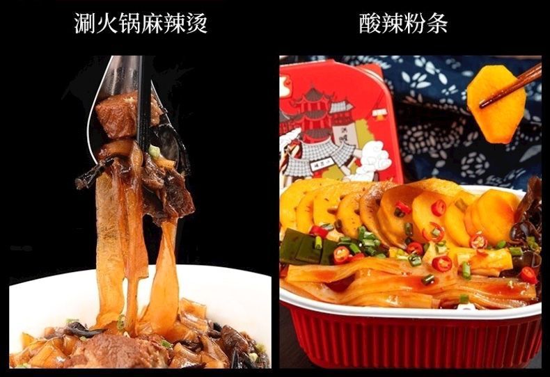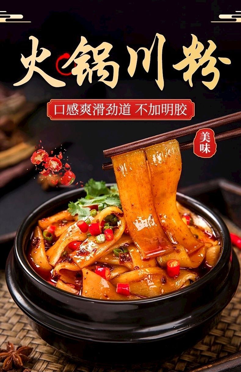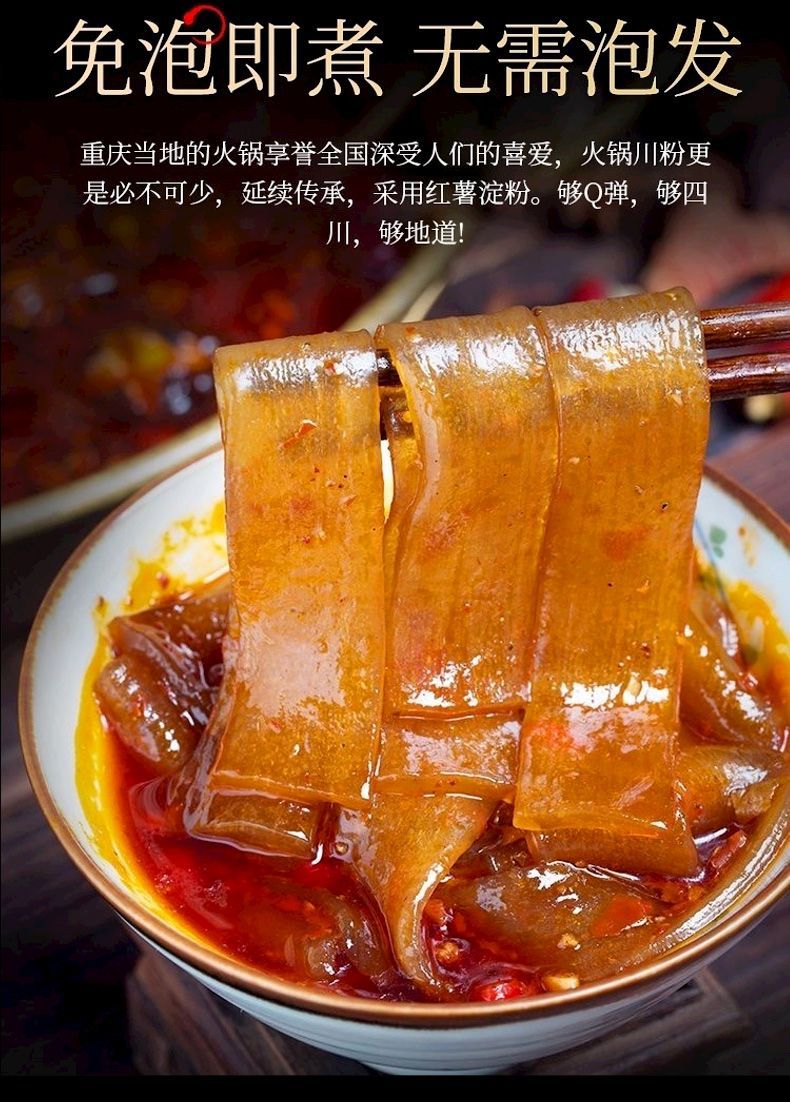 Сычуаньский хот-пот, сычуаньская лапша, широкая розовая сладкая картофельная крахмальная лапша, без замачивания, готовая к употреблению, малатан, барбекю, ингредиенты